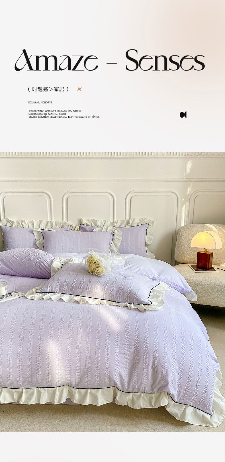 大境 2024新款小提花韩版公主风小清新轻奢四件套三件套 浪漫紫