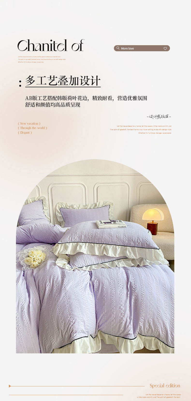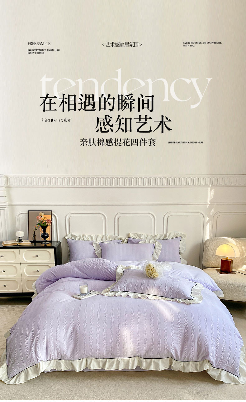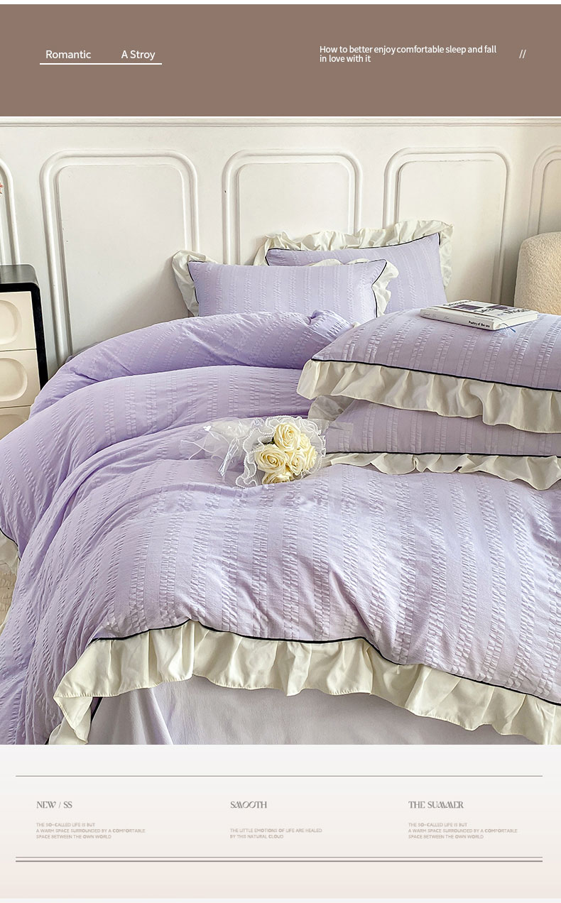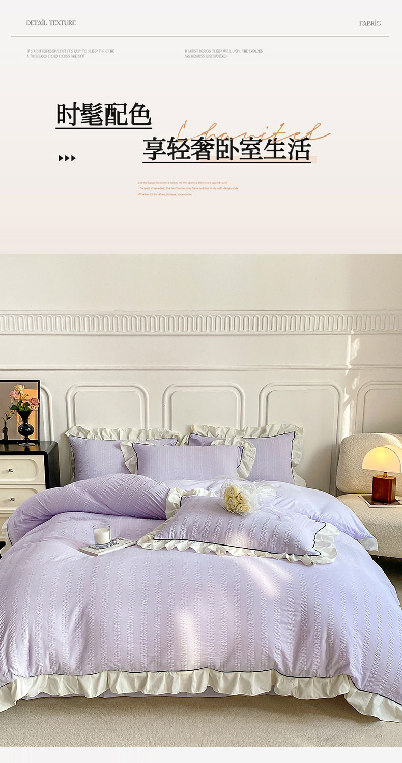 商品名称:大境 2024新款小提花韩版公主风小清新轻奢四件套三件套 浪漫紫