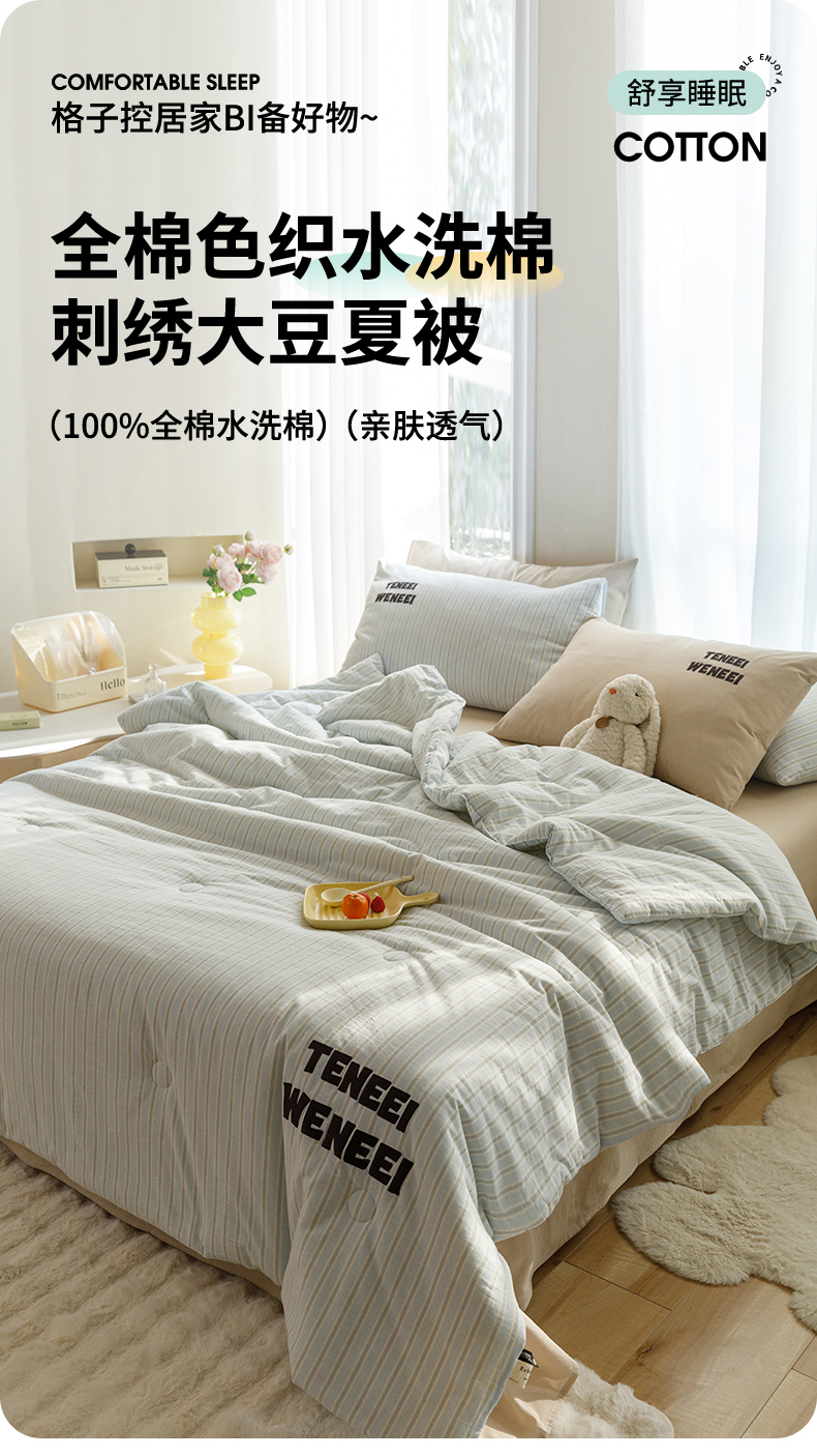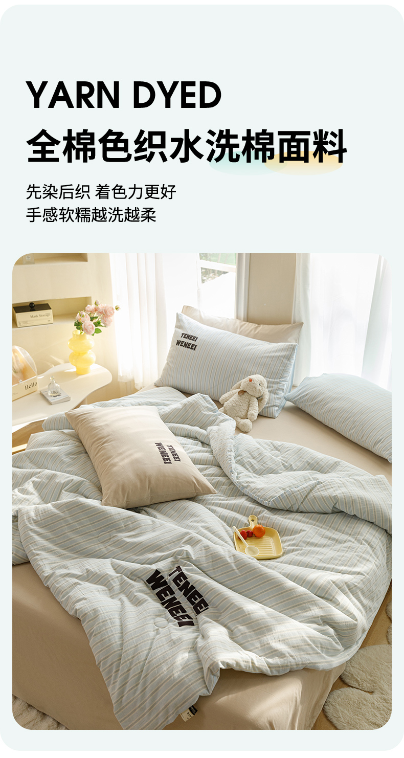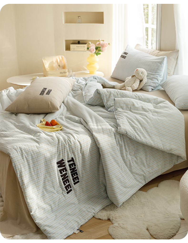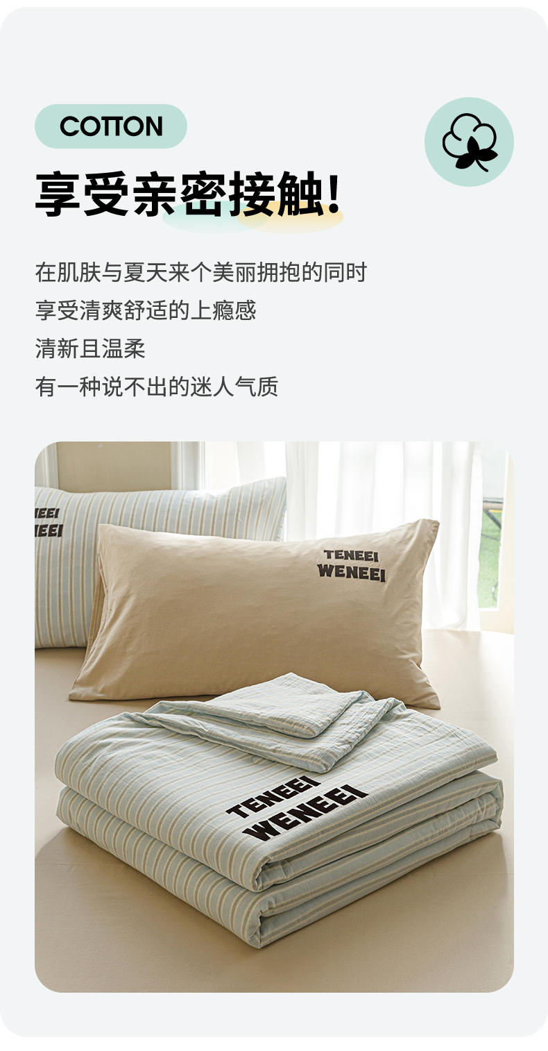 荔禾家居 2024新款ins混搭博主风全棉色织水洗棉夏被四件组 青山