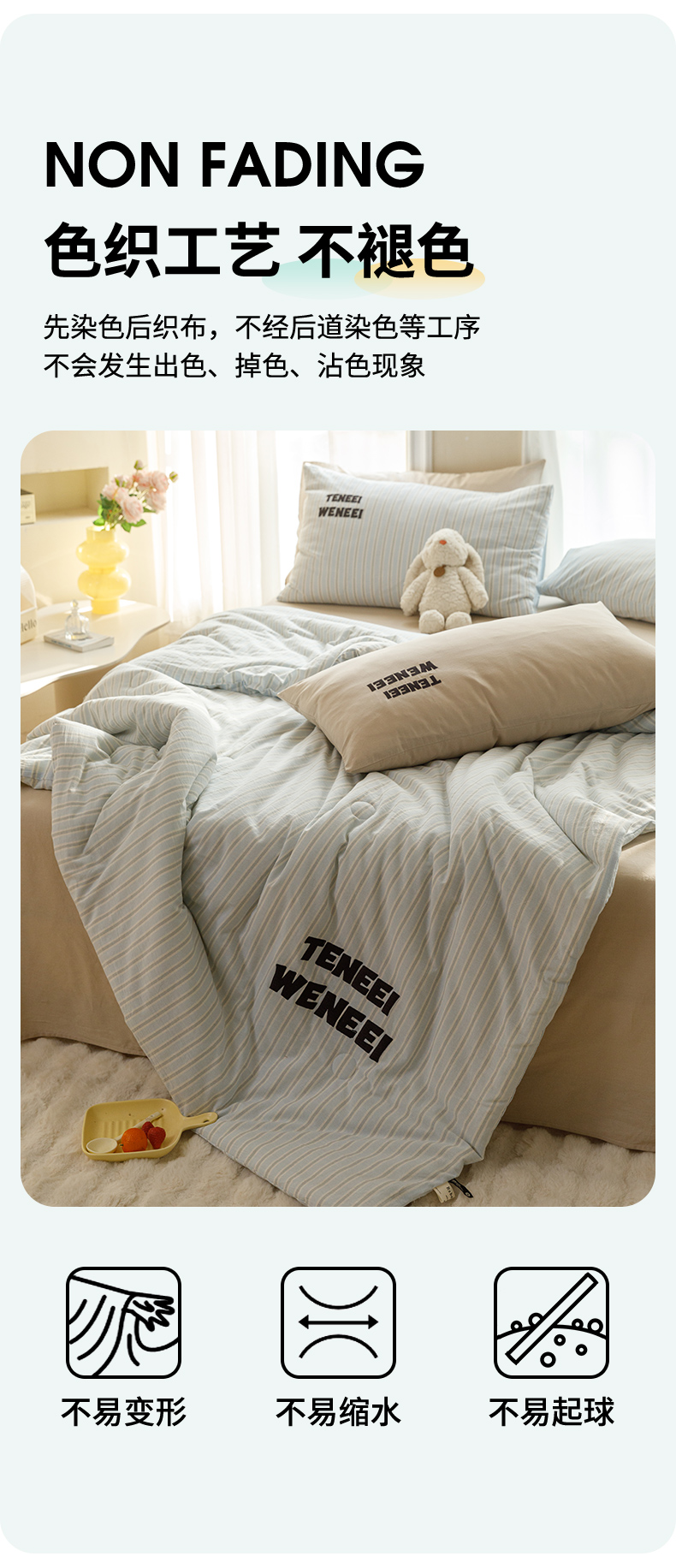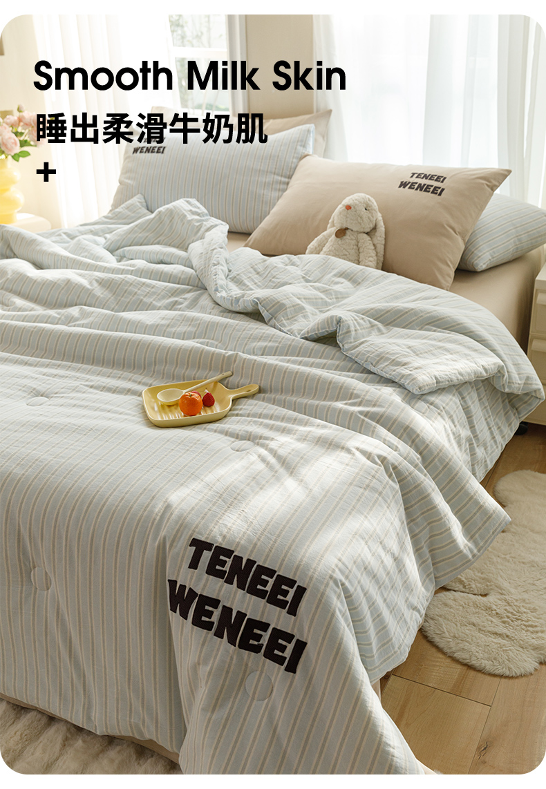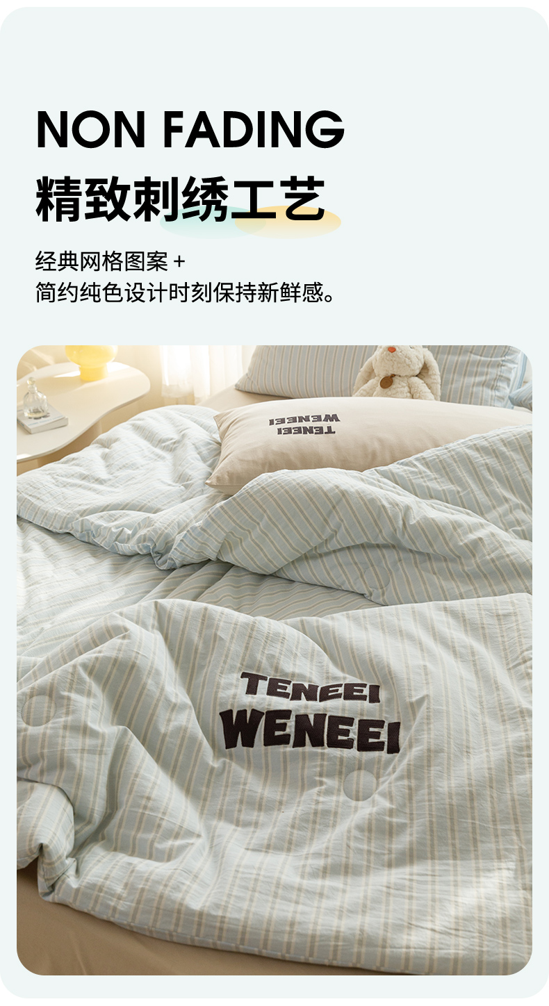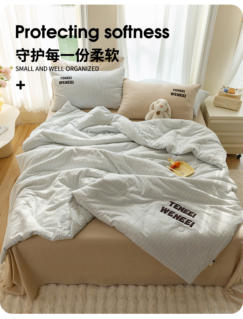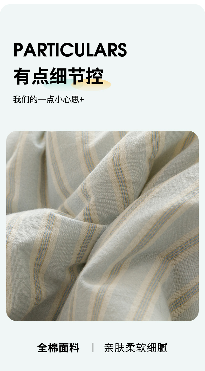 荔禾家居 2024新款ins混搭博主风全棉色织水洗棉夏被四件组 青山