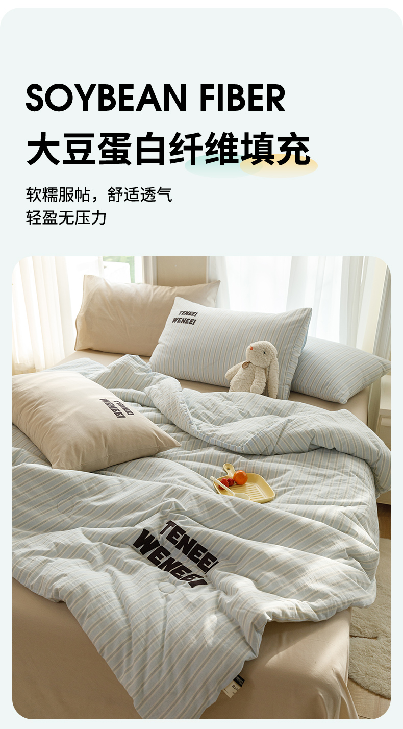 (总)荔禾家居 2024新款A类素色条纹双拼大豆被子被芯,条纹-白茶咖,条纹-洱海蓝,条纹-盈盈粉,条纹-珍珠白