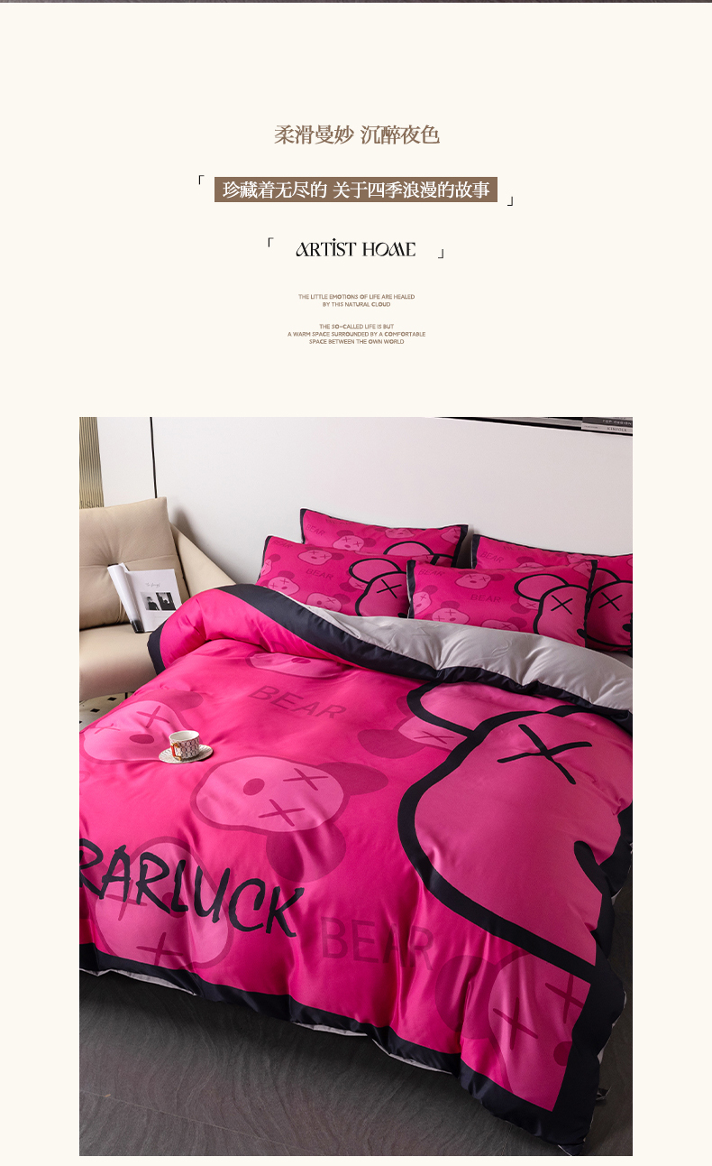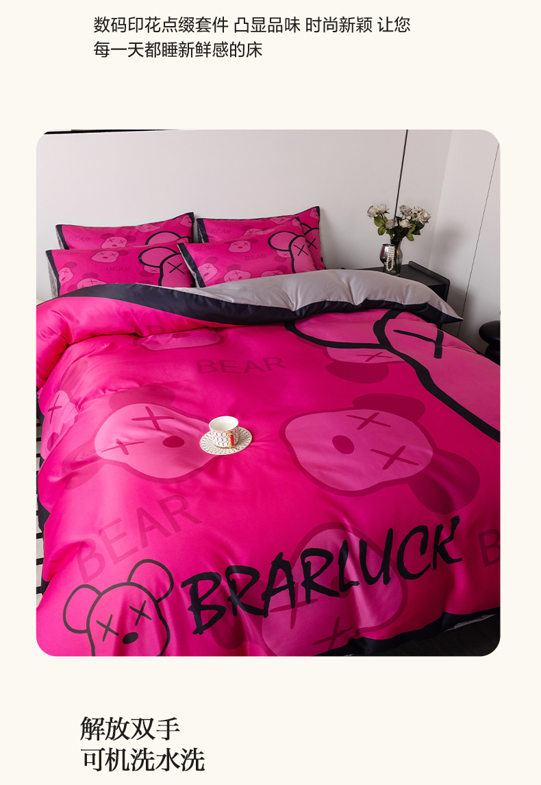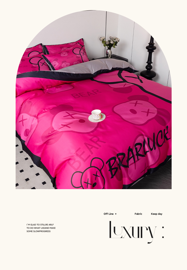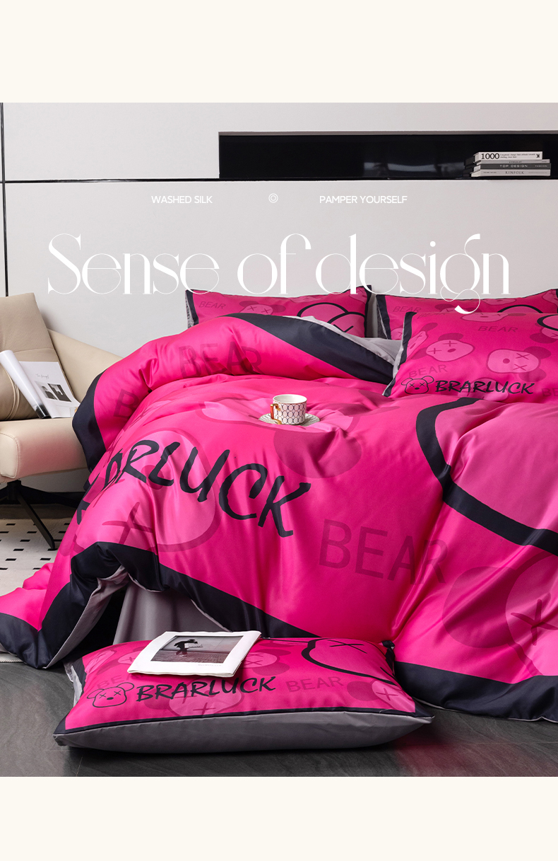 当前位置: 91家纺网 > 商品网购 > 床品套件 > 四件套 > 水洗真丝四件套 > 色鬼布艺 2024新款博主风水洗真丝四件套大牌风四件套 芭比熊
