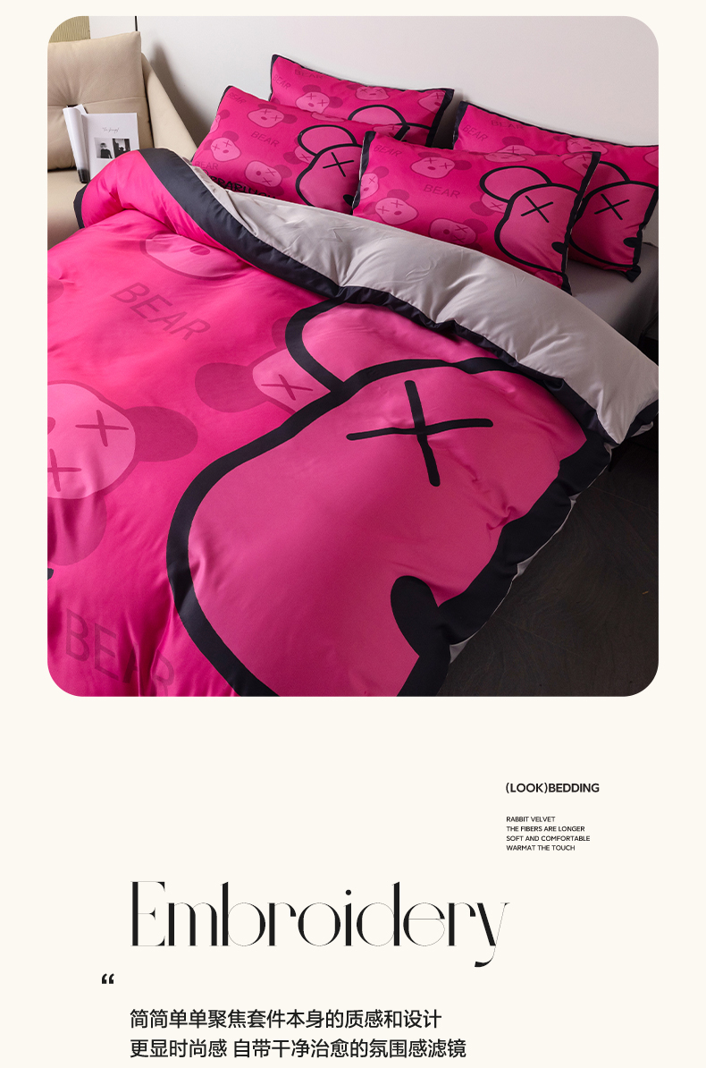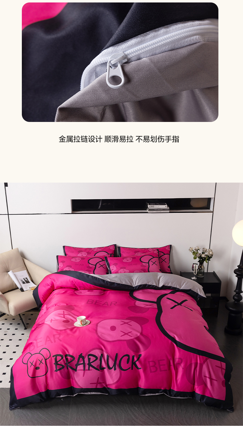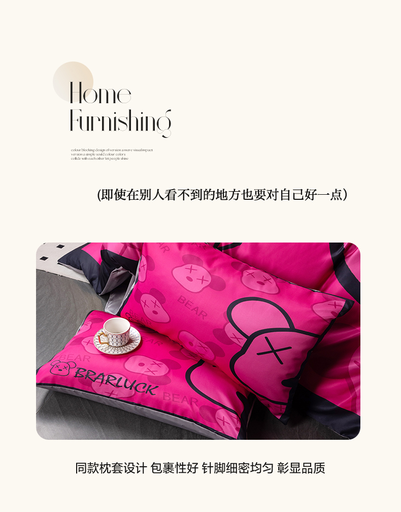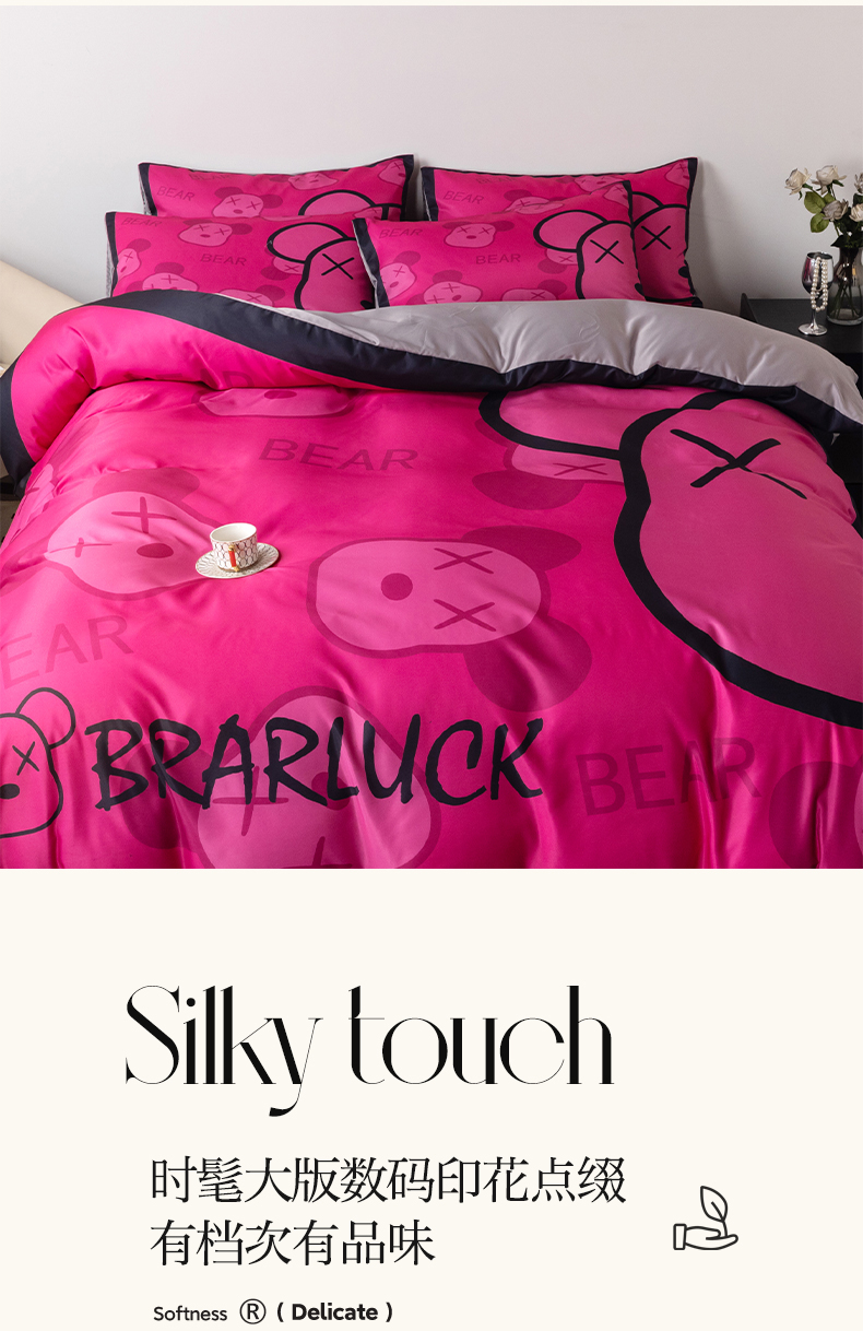 当前位置: 91家纺网 > 商品网购 > 床品套件 > 四件套 > 水洗真丝四件套 > 色鬼布艺 2024新款博主风水洗真丝四件套大牌风四件套 芭比熊