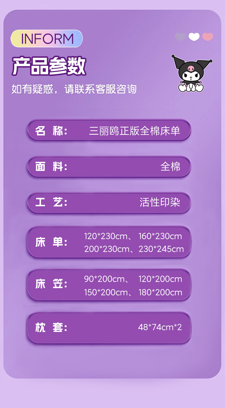 商品名称:(总)沐辰 2024新款正版三丽鸥花型床单