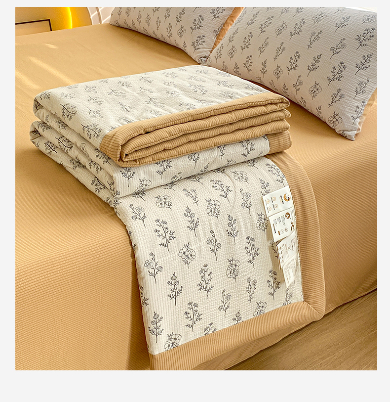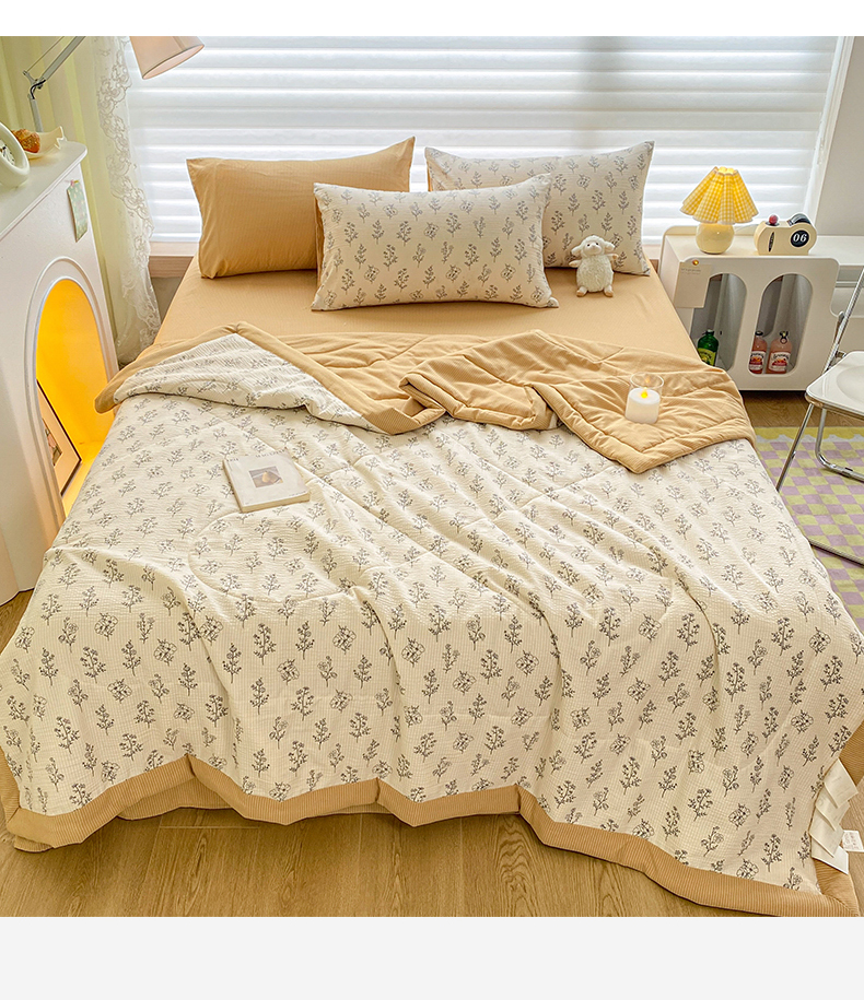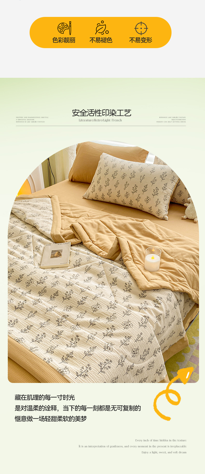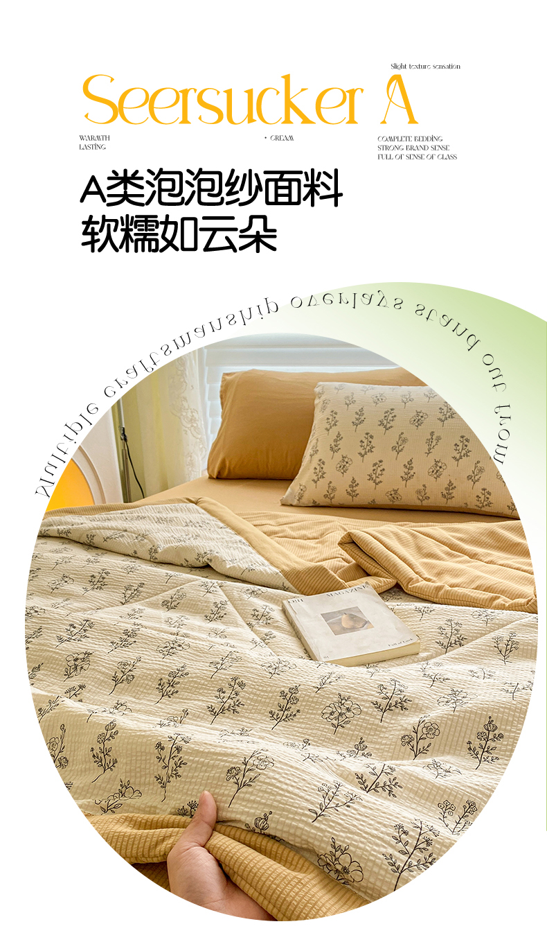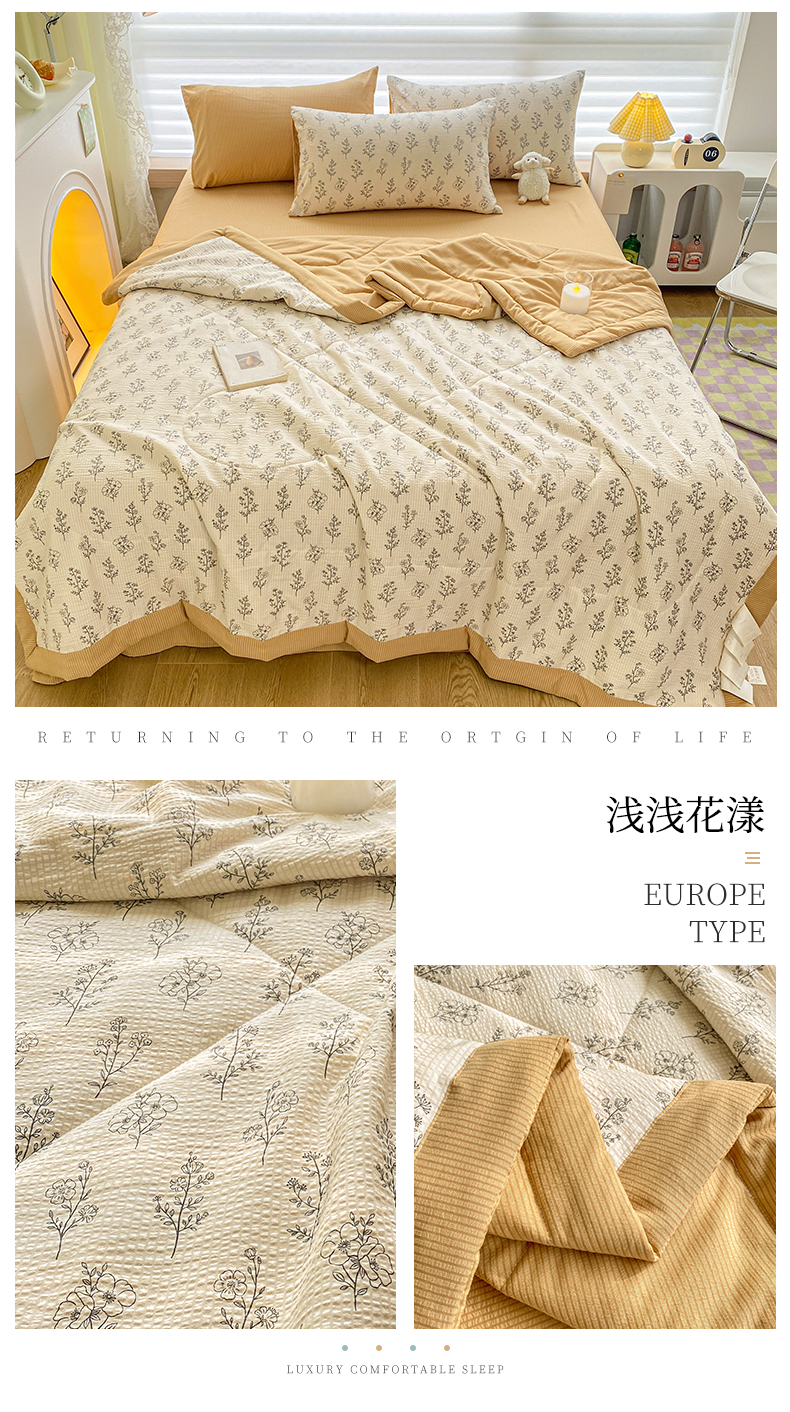 • 91家纺网 家纺一手货源 找家纺 可思家纺 2024新款A类泡泡纱夏被四件套 浅浅花漾
