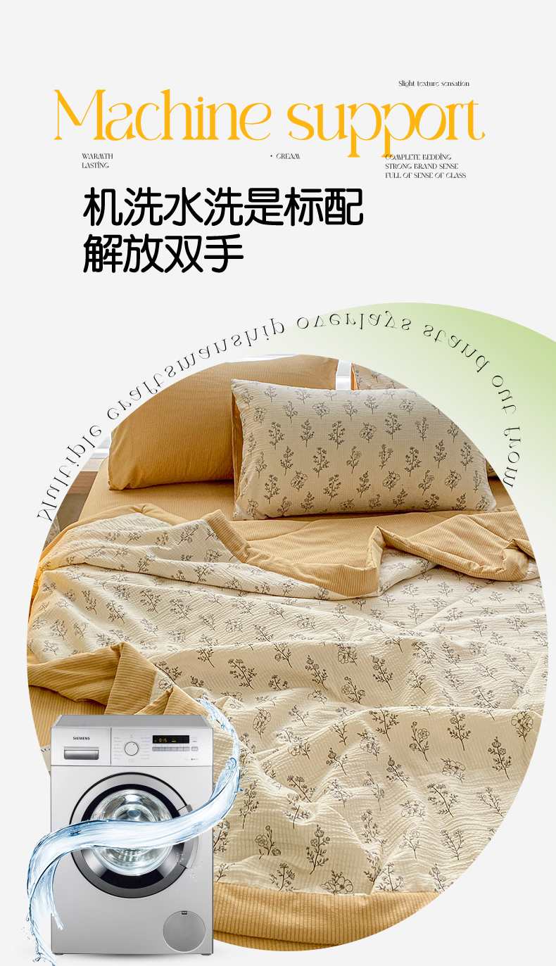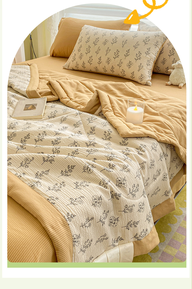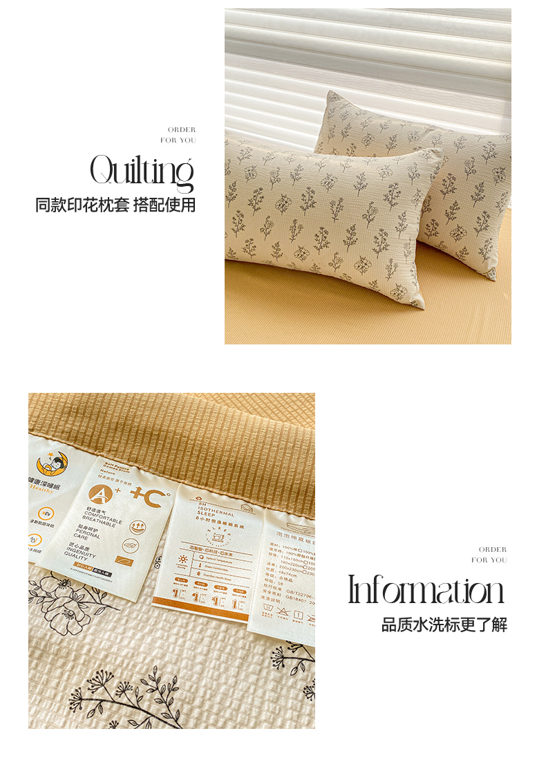 当前位置: 91家纺网 > 商品网购 > 被子 > 夏被 > 可思家纺 2024新款A类泡泡纱夏被四件套 浅浅花漾