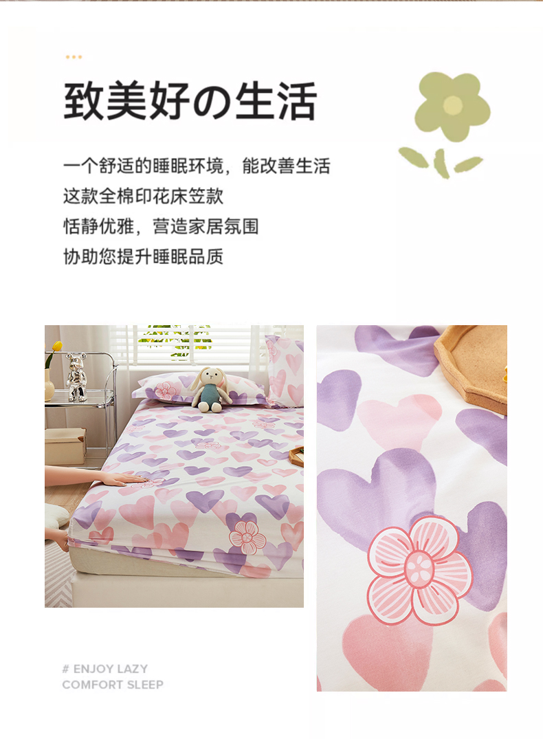• 91家纺网 家纺一手货源 找家纺 名优家纺 2024新款13070套件系列-单床笠 小甜心-紫色