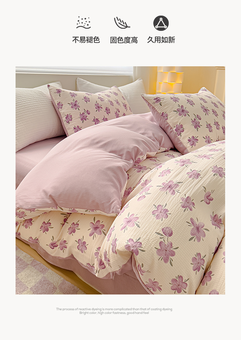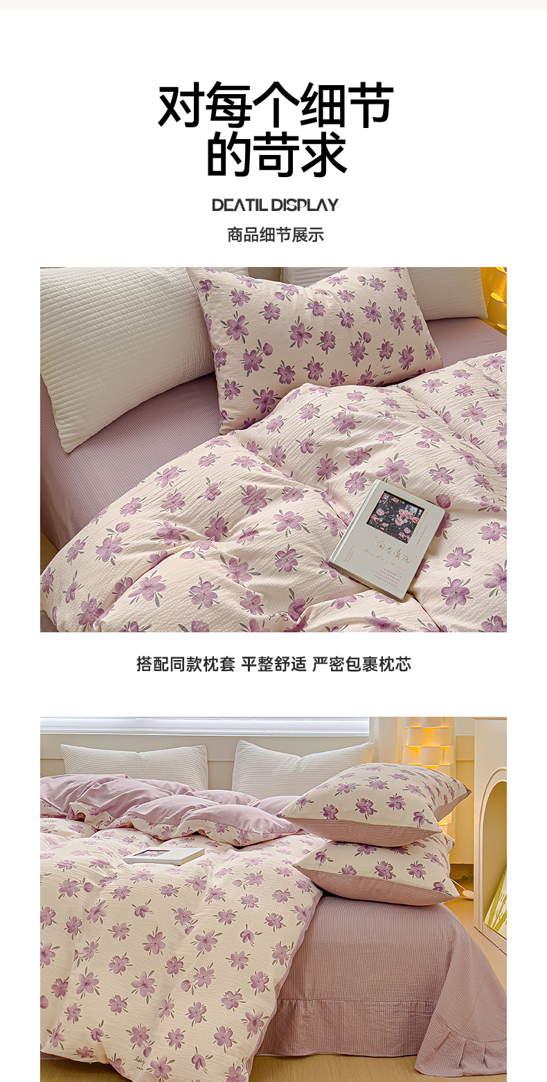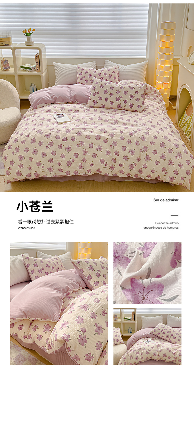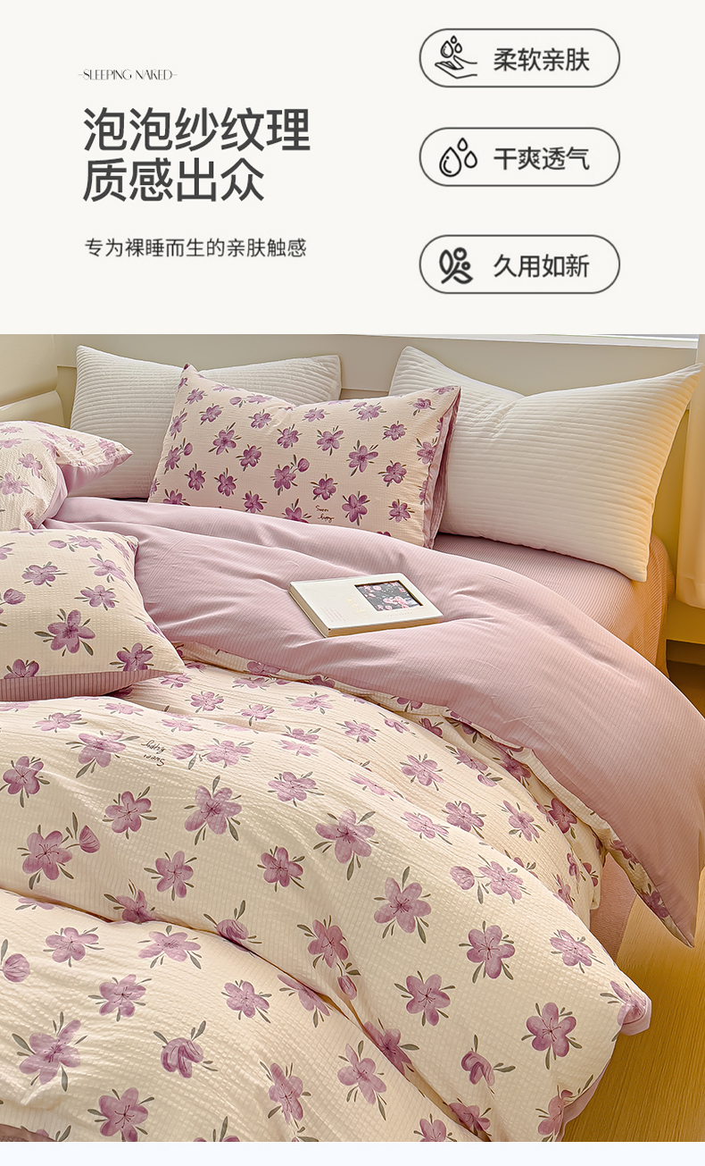 商品名称:可思家纺 2024新款A类水洗泡芙棉泡泡纱四件套 小苍兰