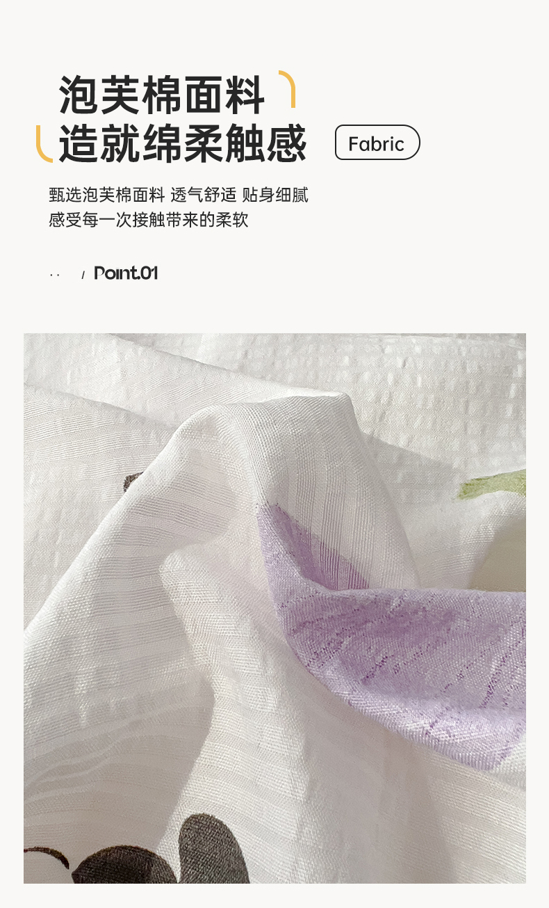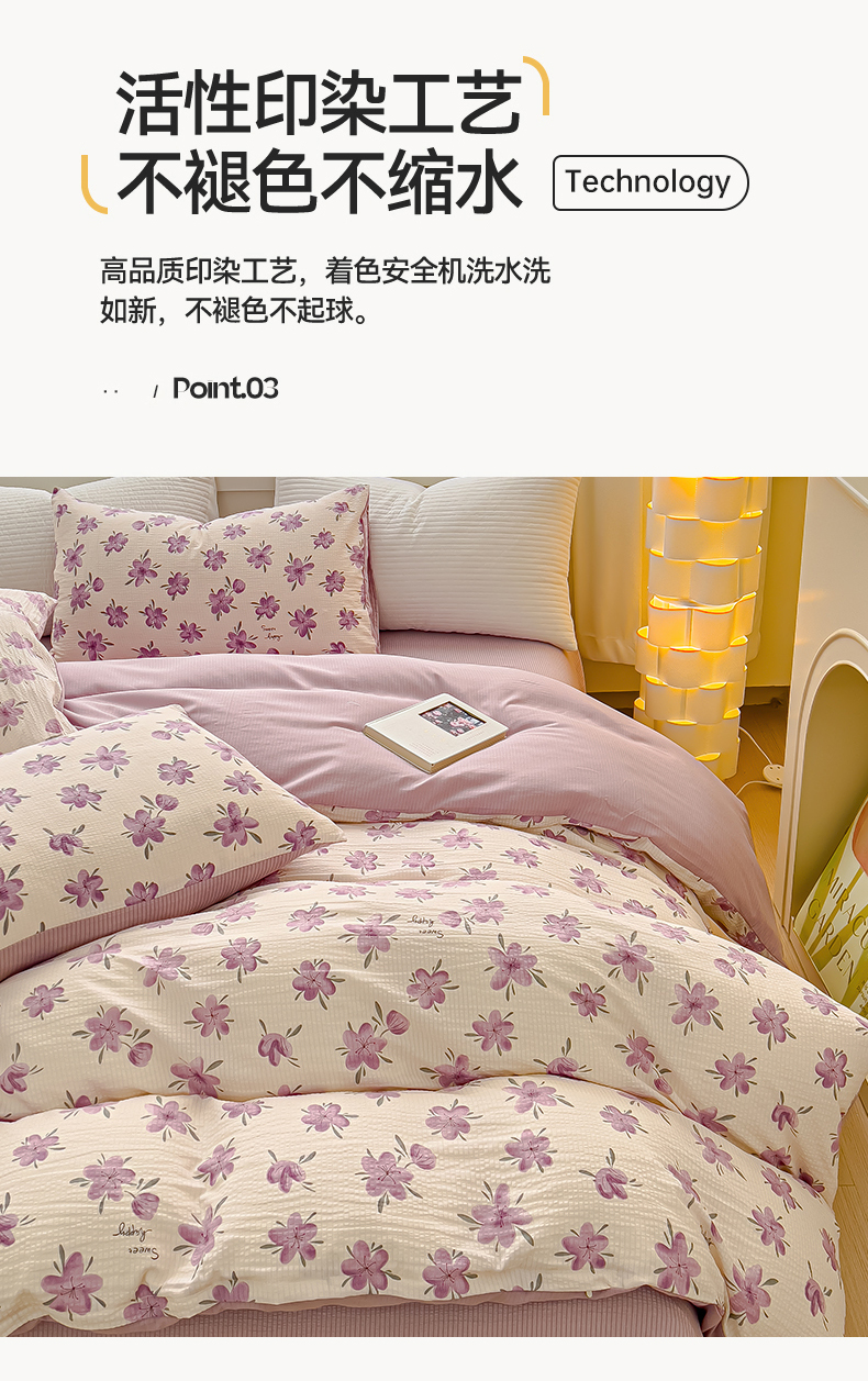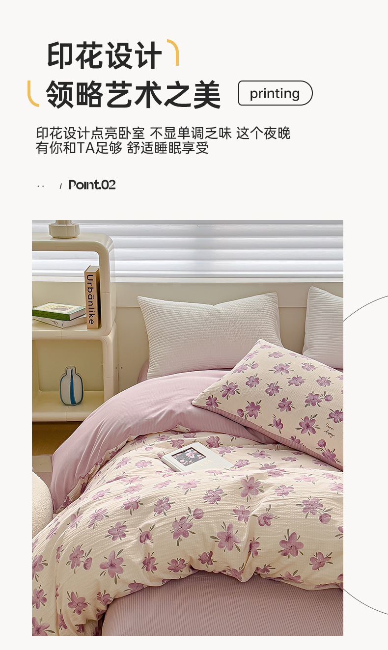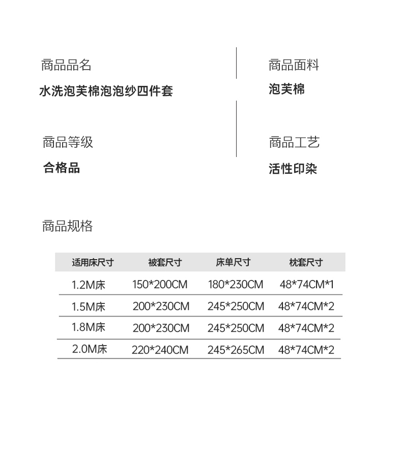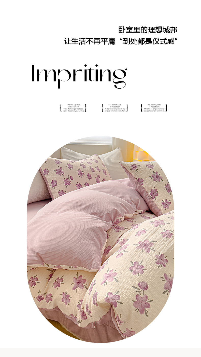 商品名称:可思家纺 2024新款A类水洗泡芙棉泡泡纱四件套 小苍兰