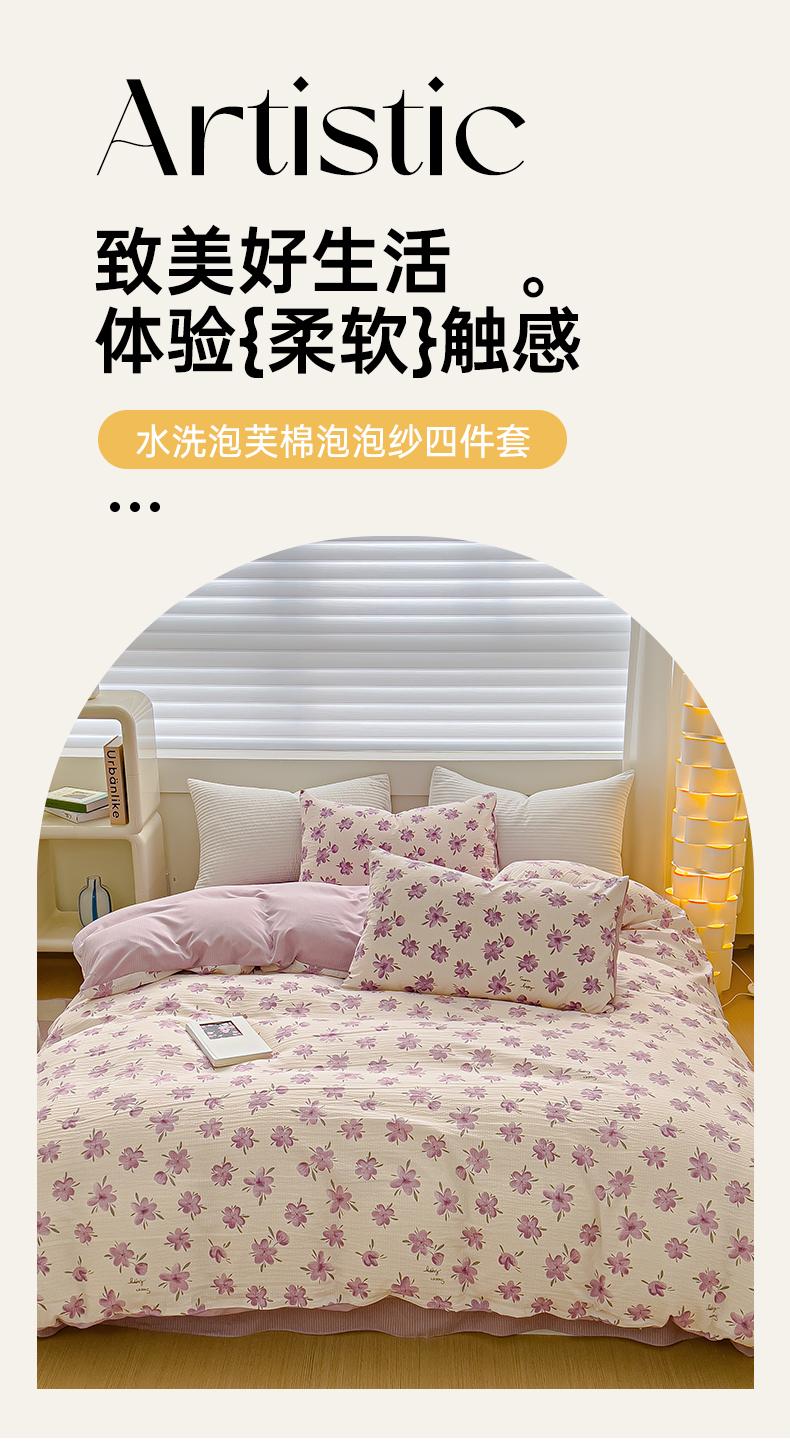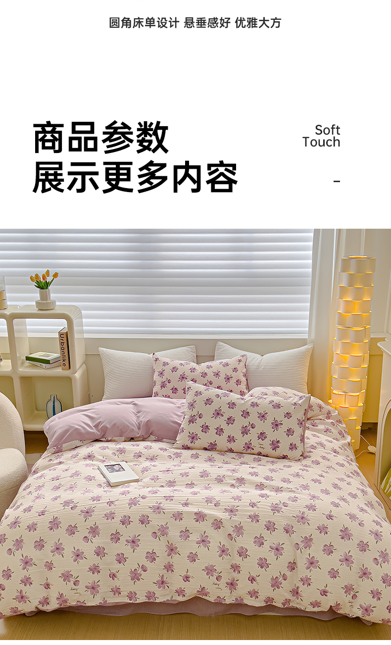 (总)可思家纺2025新款云感木棉皱皱纱四件套,安娜,薄雾花海,贝拉,春日小花,蝶舞翩翩,格调粉,格调兰,海韵蓝调,花开半夏,花田梦语,兰亭雅叙,浪漫花季,满庭芳,漫步茶卡,梦华录,奶油格子,群芳艳,少女日记,时光漫境,拾光悠悠,水中仙紫,甜茶,小花集,小美好,熊熊假日,叶语