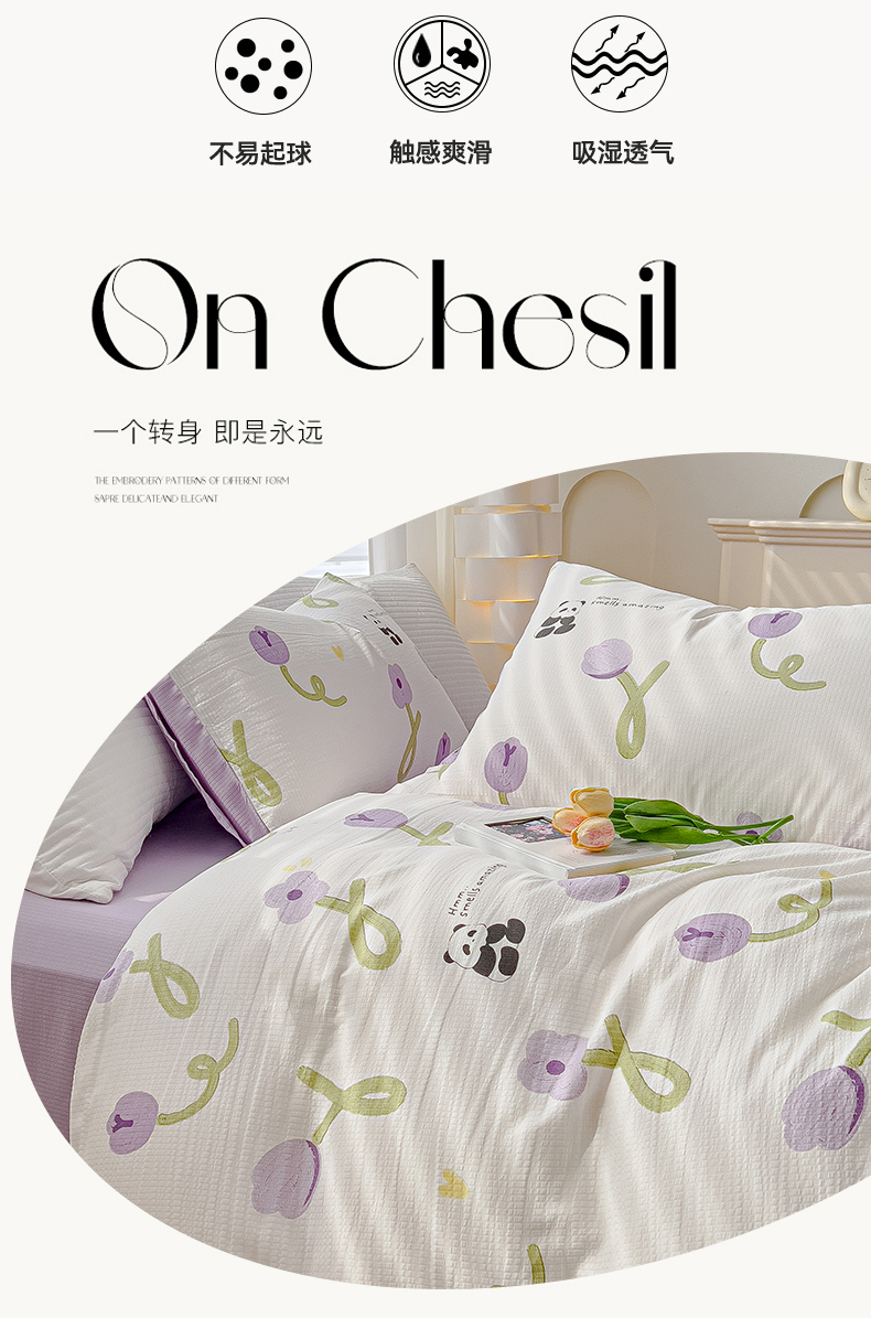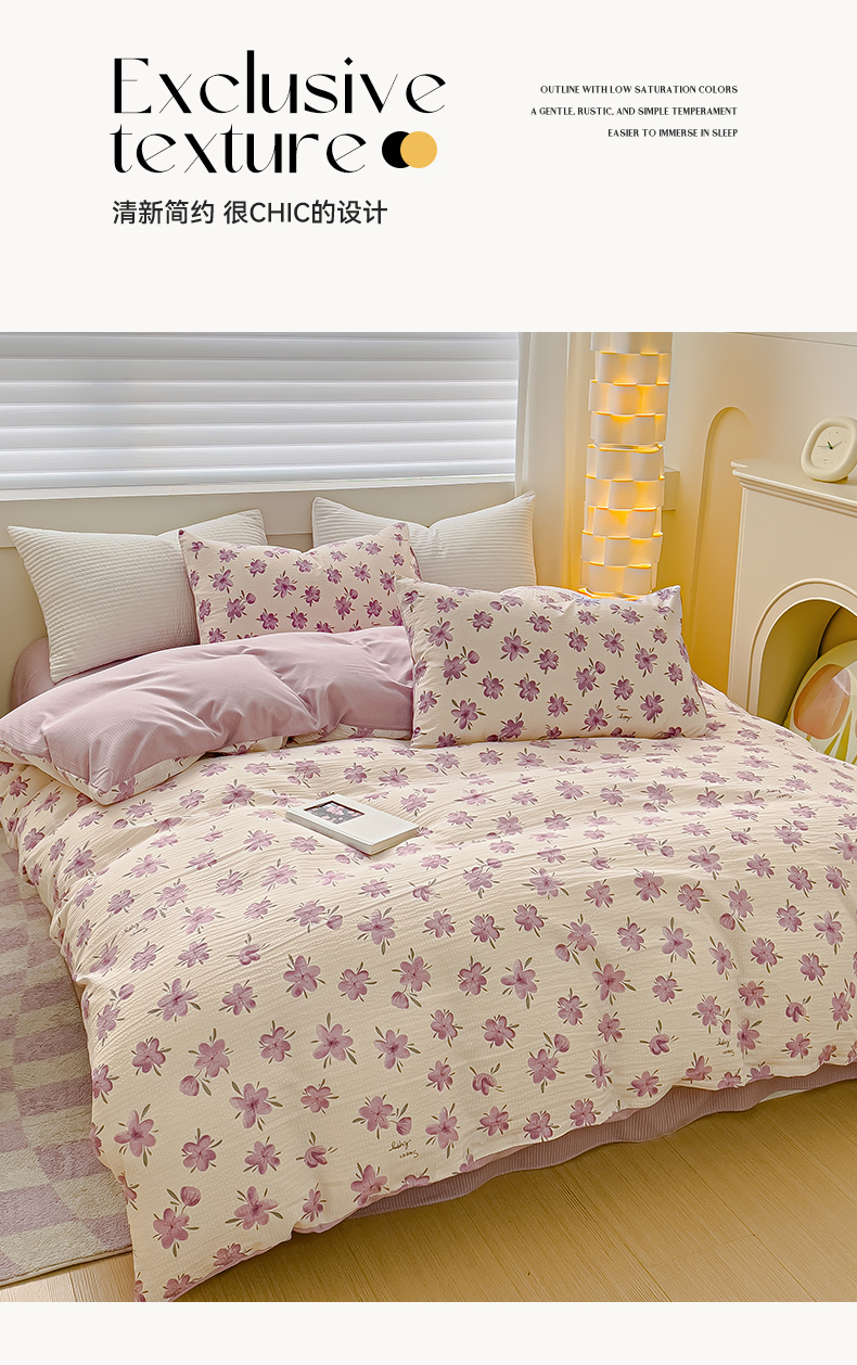 可思家纺 2024新款A类水洗泡芙棉泡泡纱四件套 小苍兰