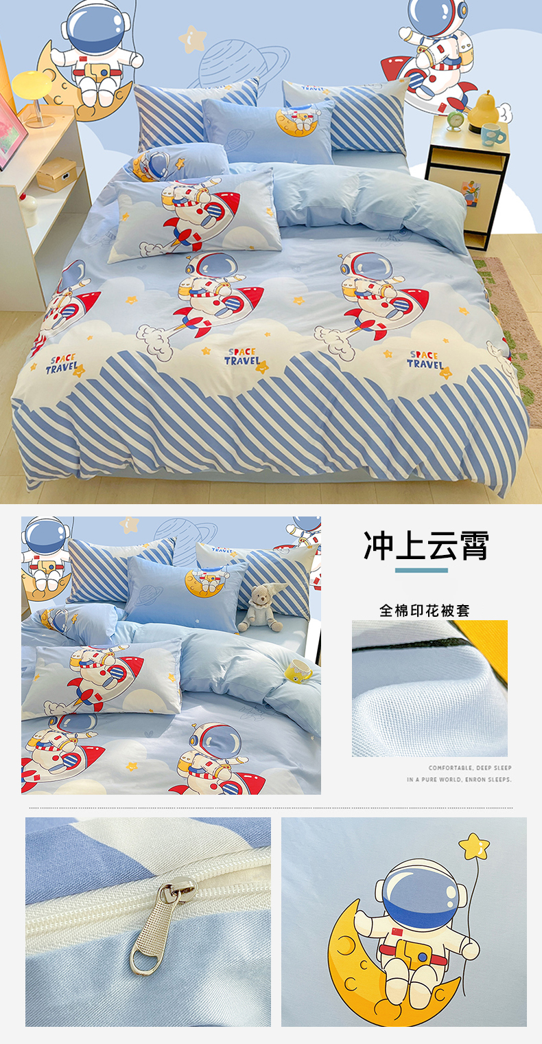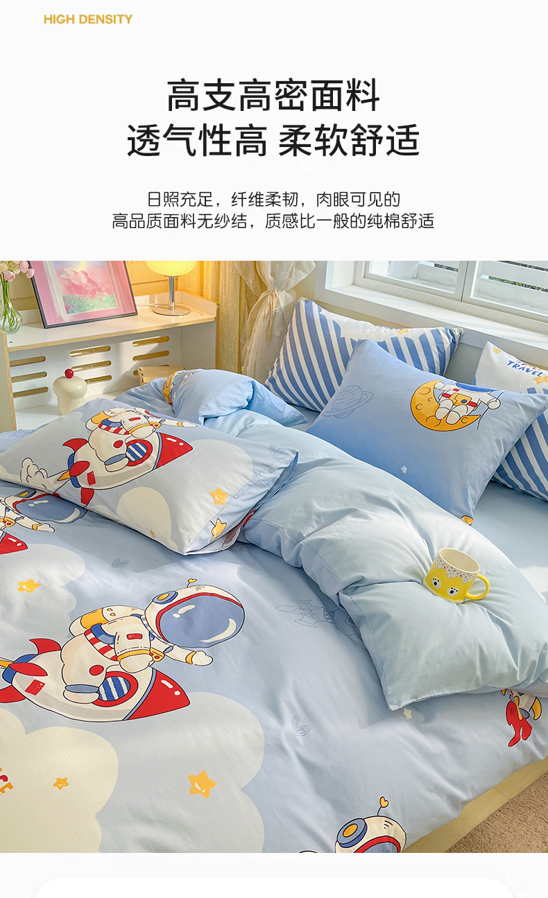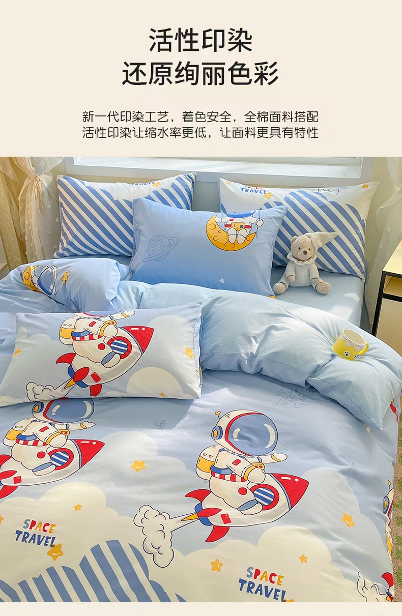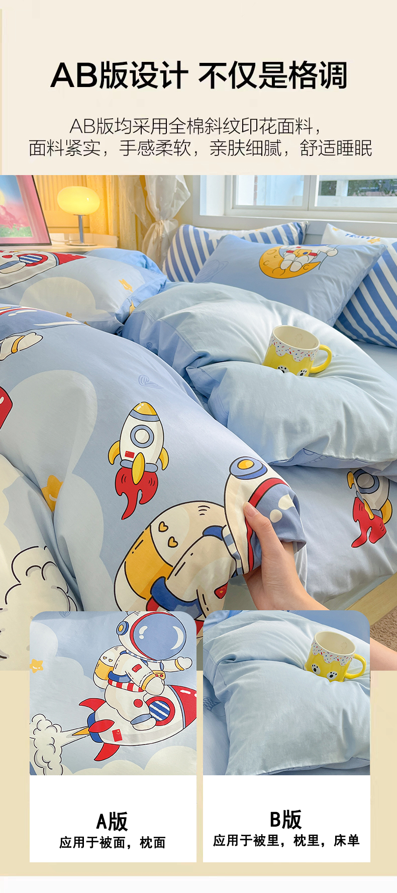商品名称:金鑫汇家纺 2024新款全棉纯棉卡通印花四件套单品系列-单被套 冲上云霄