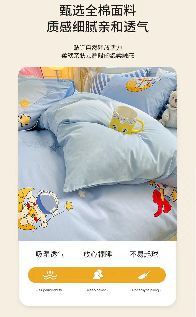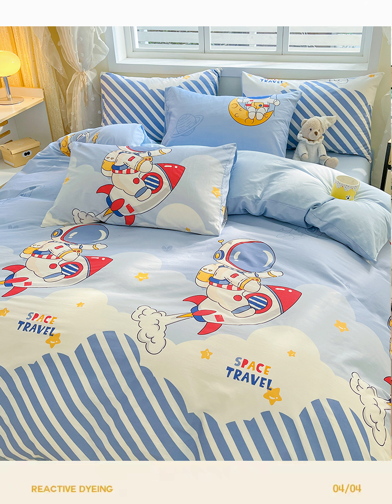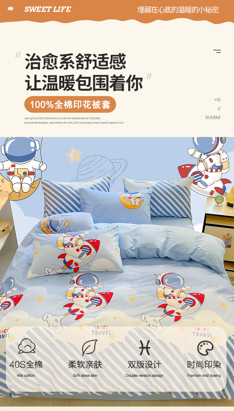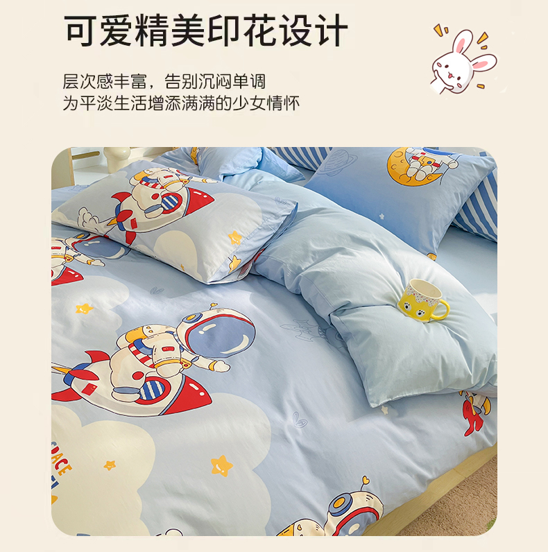 商品名称:金鑫汇家纺 2024新款全棉纯棉卡通印花四件套单品系列-单被套 冲上云霄