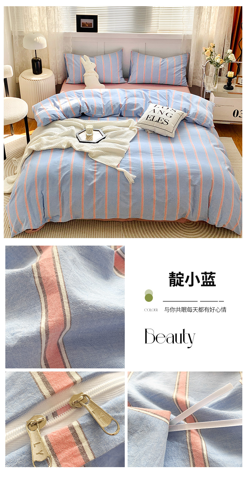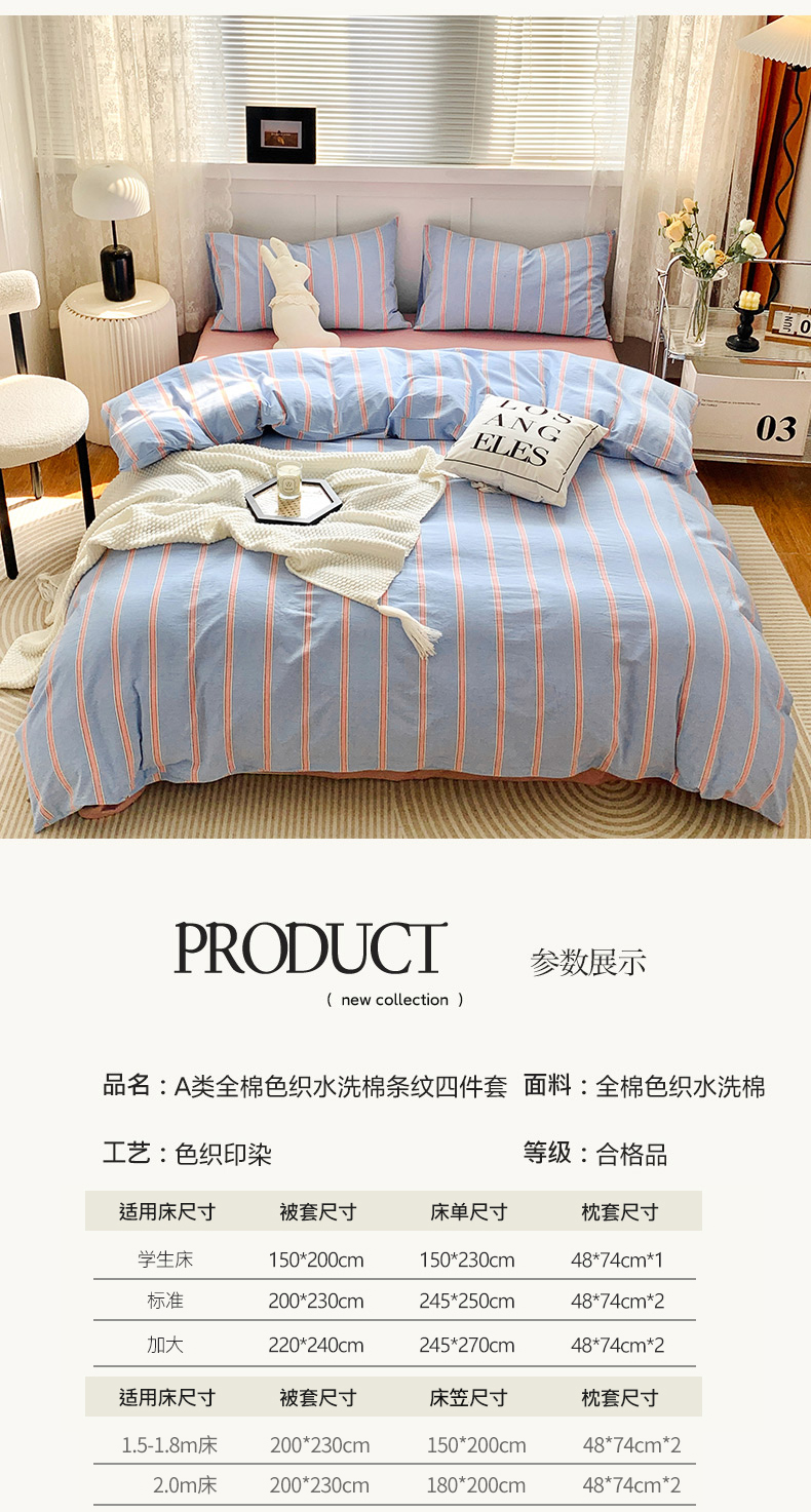 商品名称:莱茵家居 2024新款色织水洗棉小小系列四件套靛小蓝
