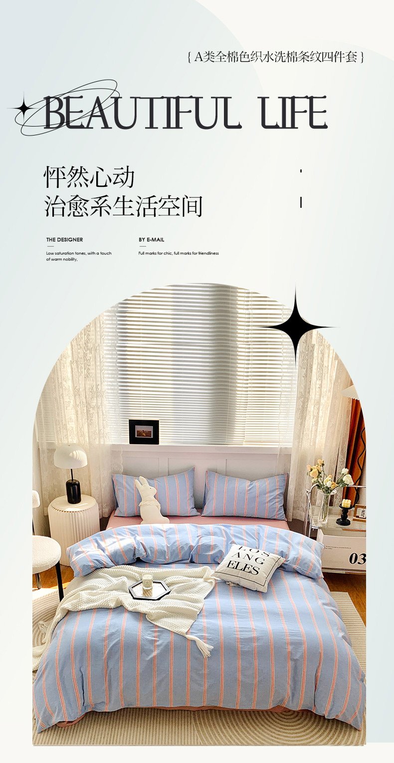 (总)莱茵家居 2025新款全棉纯棉皱皱纱条纹四件套-杼影,杼影-咖纸蓝,杼影-冷雾蓝,杼影-麦浪紫,杼影-绵云咖,杼影-奶泡粉,杼影-暖果黄,杼影-午茶绿,杼影-雨巷灰