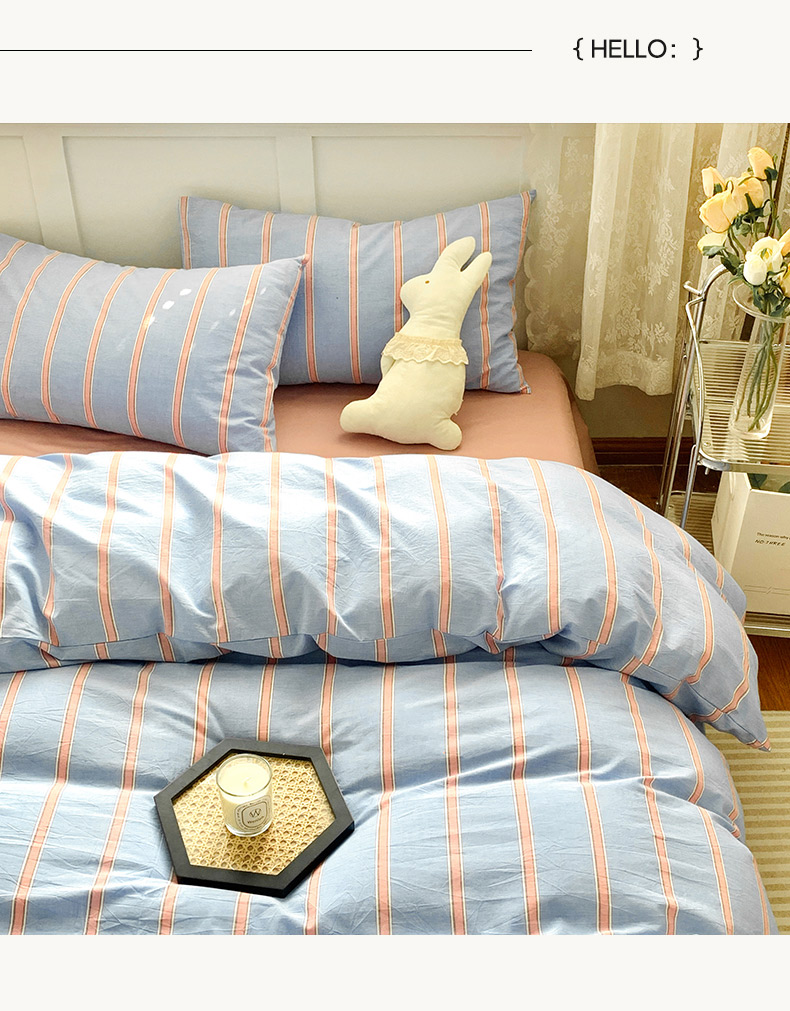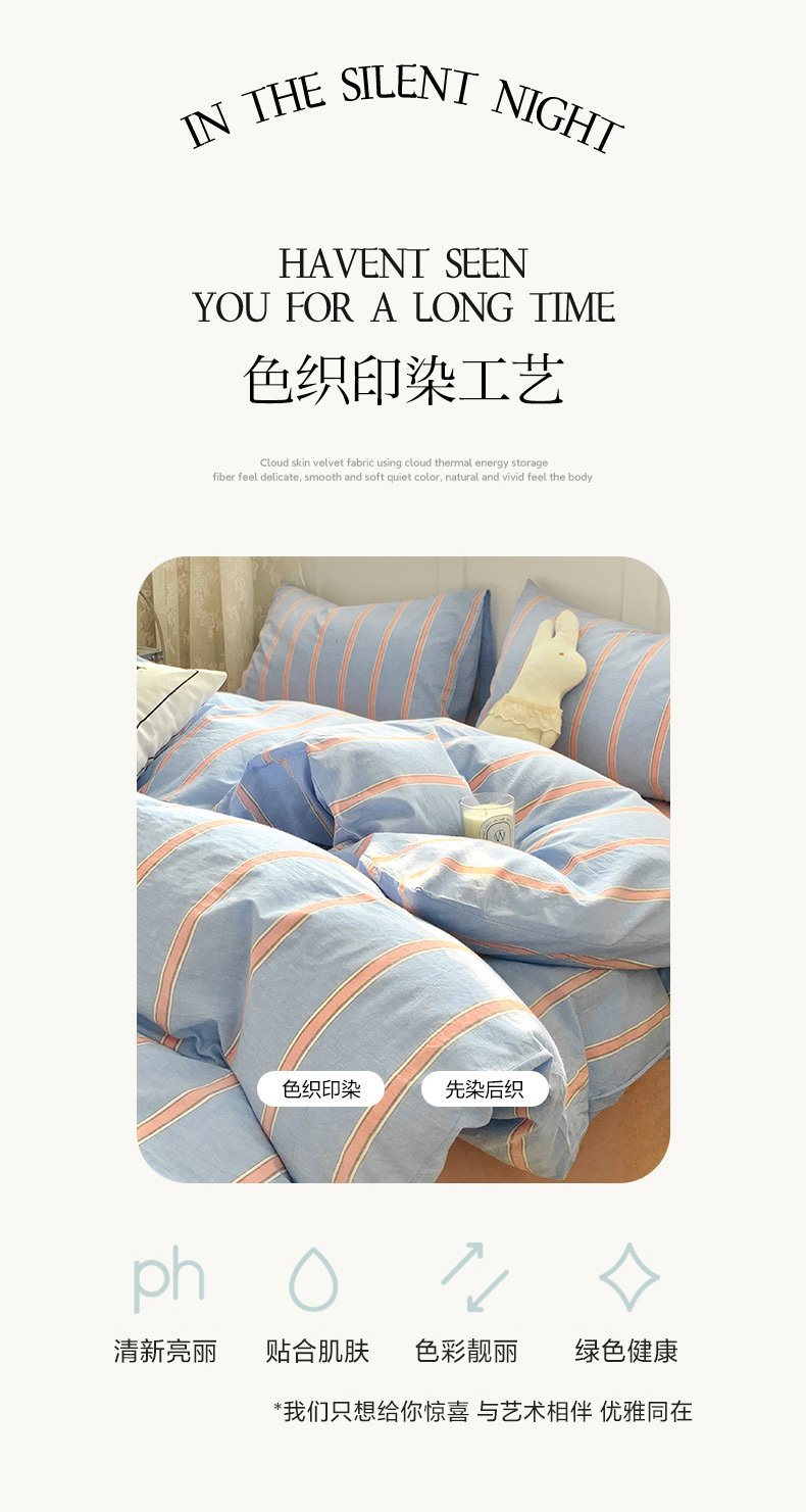 莱茵家居 2024新款色织水洗棉小小系列四件套靛小蓝