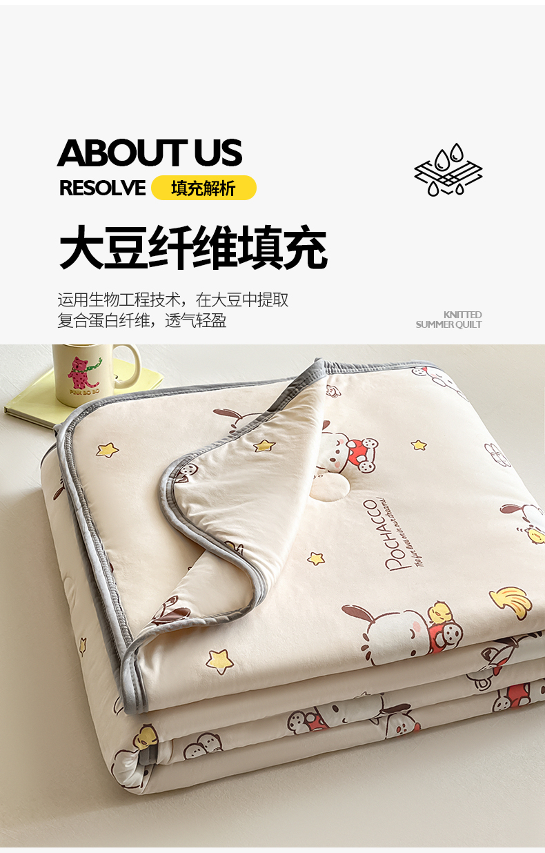 • 91家纺网 家纺一手货源 找家纺 桃子家居 2024新款A类三丽鸥正版授权高品质牛奶丝软糯针织棉夏被系列 针织棉三丽鸥-小鸡帕恰狗