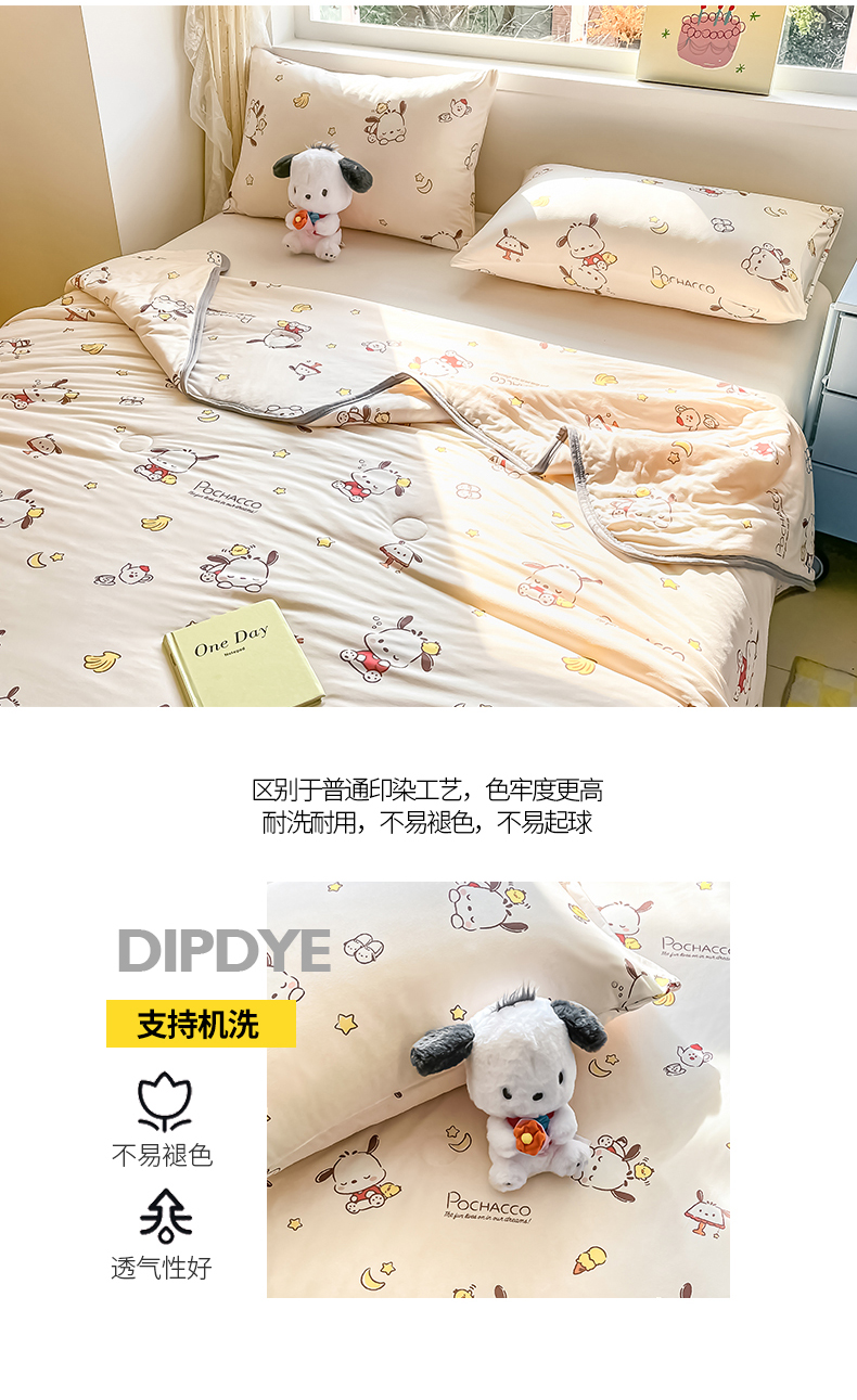 当前位置: 91家纺网 > 商品网购 > 被子 > 普通夏被 > 桃子家居 2024新款A类三丽鸥正版授权高品质牛奶丝软糯针织棉夏被系列 针织棉三丽鸥-小鸡帕恰狗