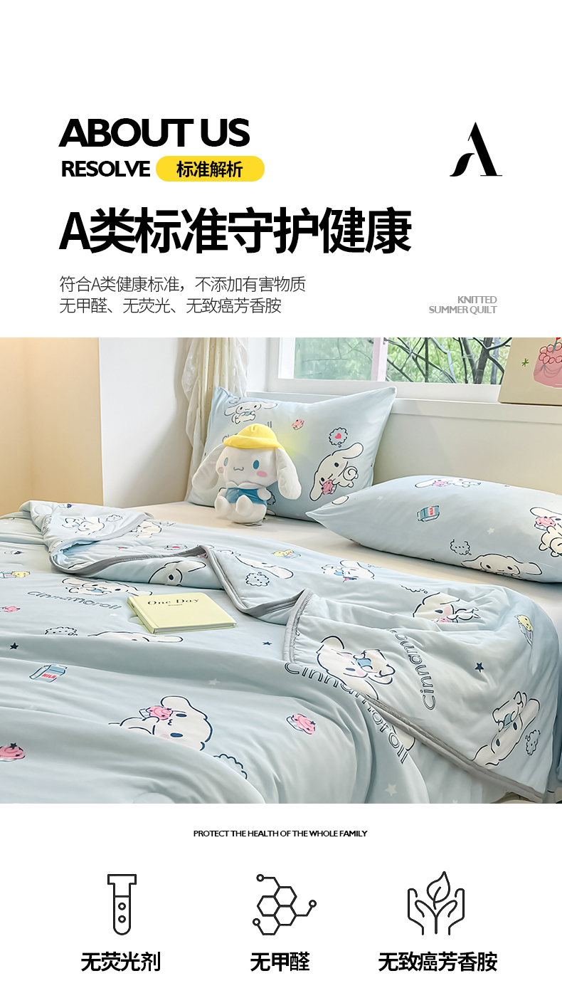 • 91家纺网 家纺一手货源 找家纺 桃子家居 2024新款A类三丽鸥正版授权高品质牛奶丝软糯针织棉夏被系列 针织棉三丽鸥-牛奶甜点玉桂狗