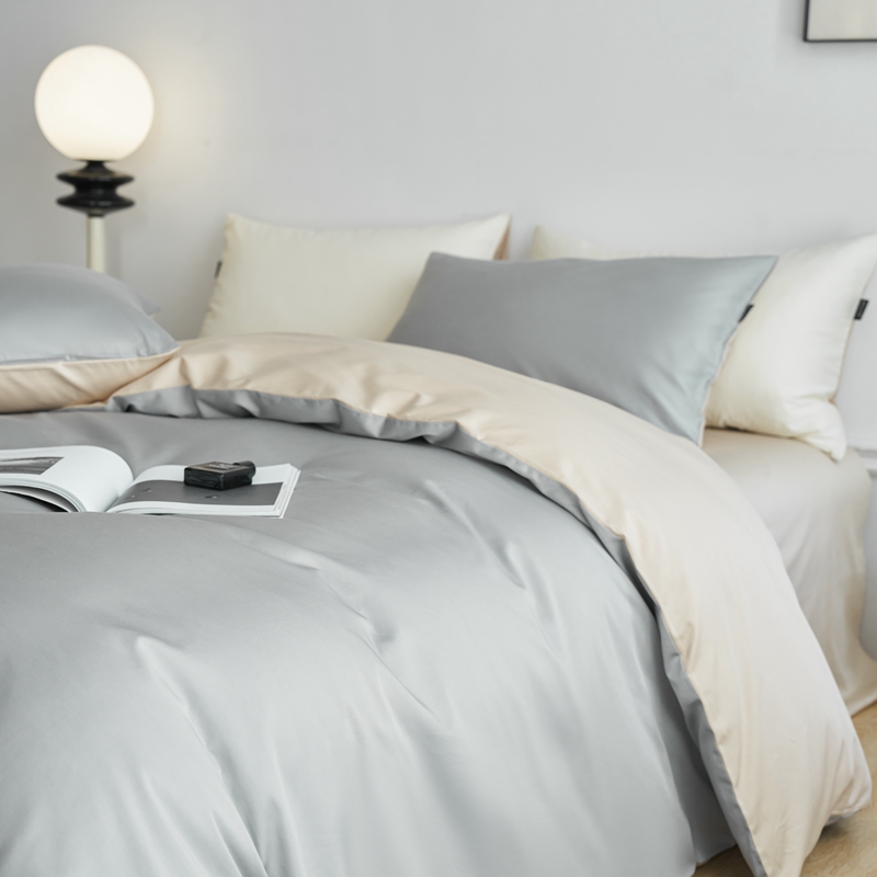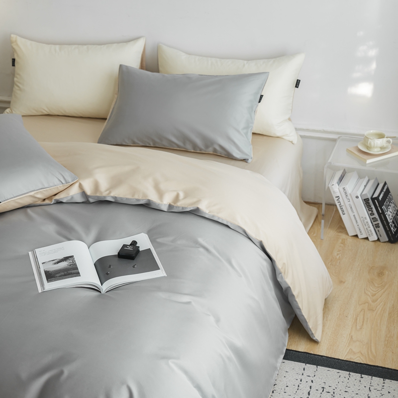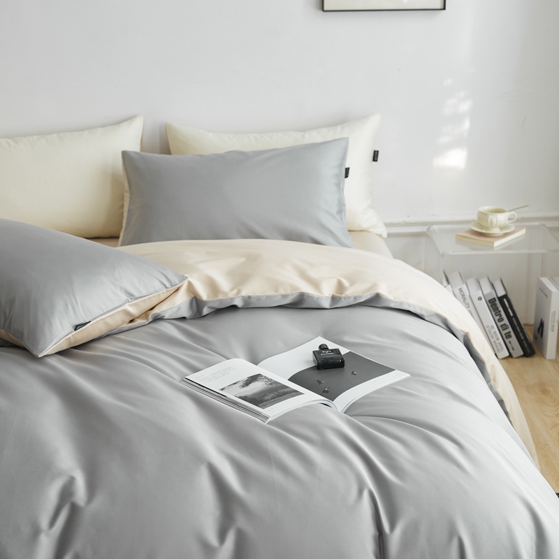 商品名称:安莱生活 2024新款100s长绒棉贡缎双拼四件套 红灰-棕灰