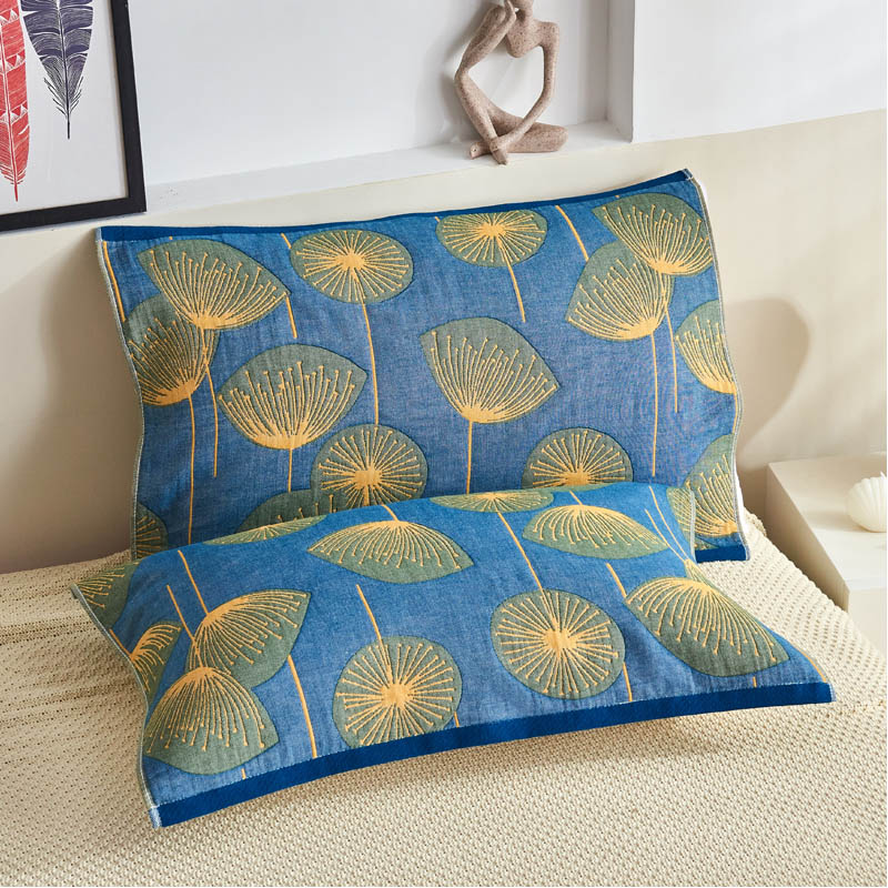 • 91家纺网 家纺一手货源 找家纺 朴尔毛巾被 2024年民族风彩棉系列四层纱布枕巾 梦幻蒲公英蓝52*78cm/一对