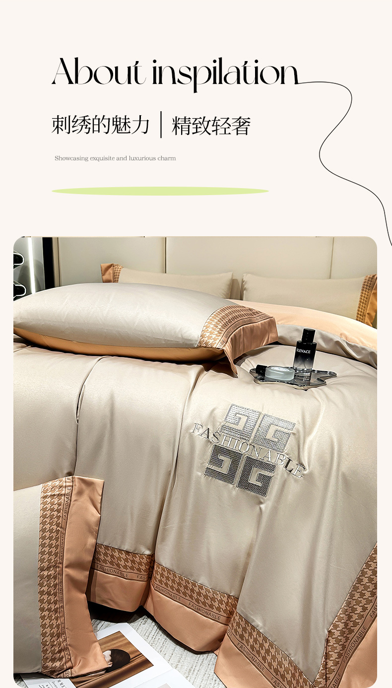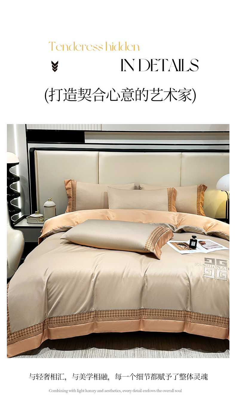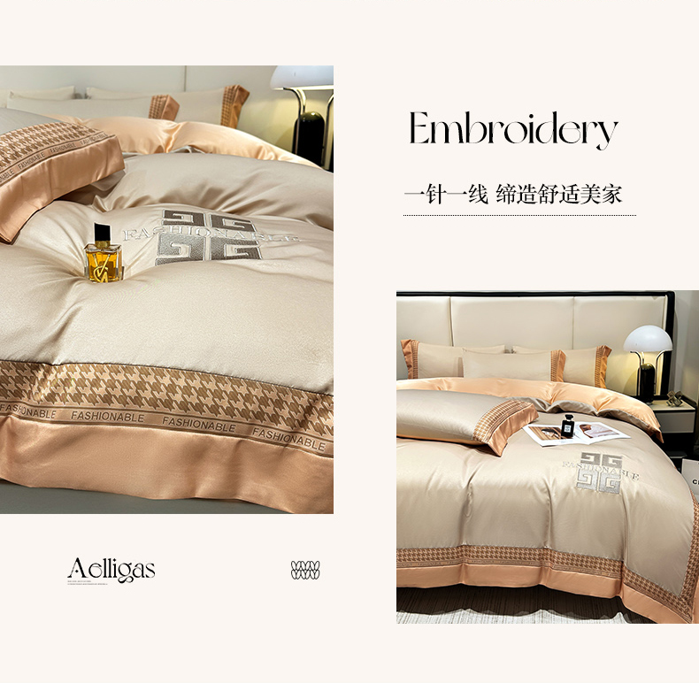 富盛家纺 2024新款水洗真丝刺绣四件套-威灵顿 威灵顿—香槟