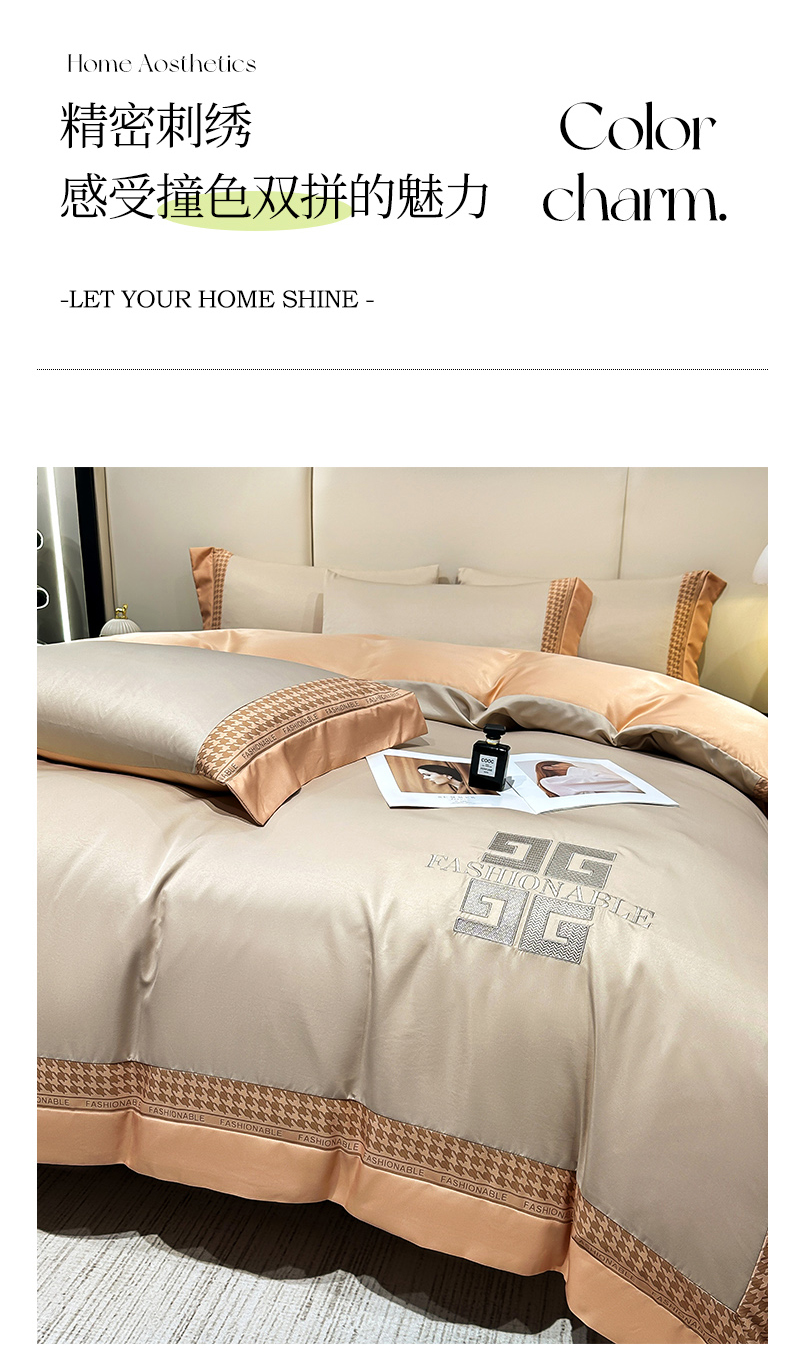 商品名称:富盛家纺 2024新款水洗真丝刺绣四件套-威灵顿 威灵顿—香槟