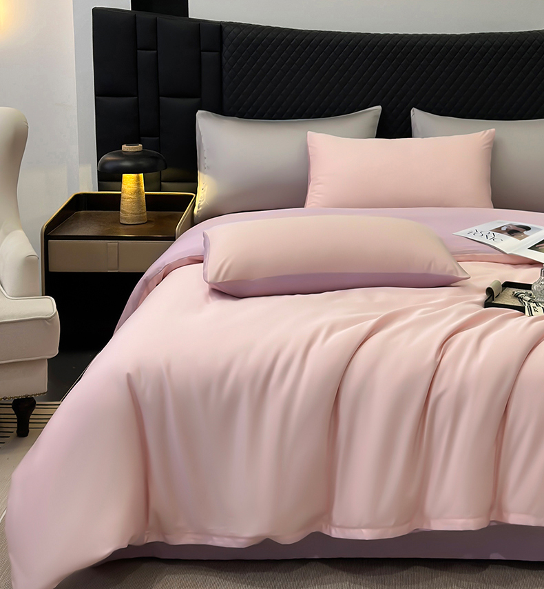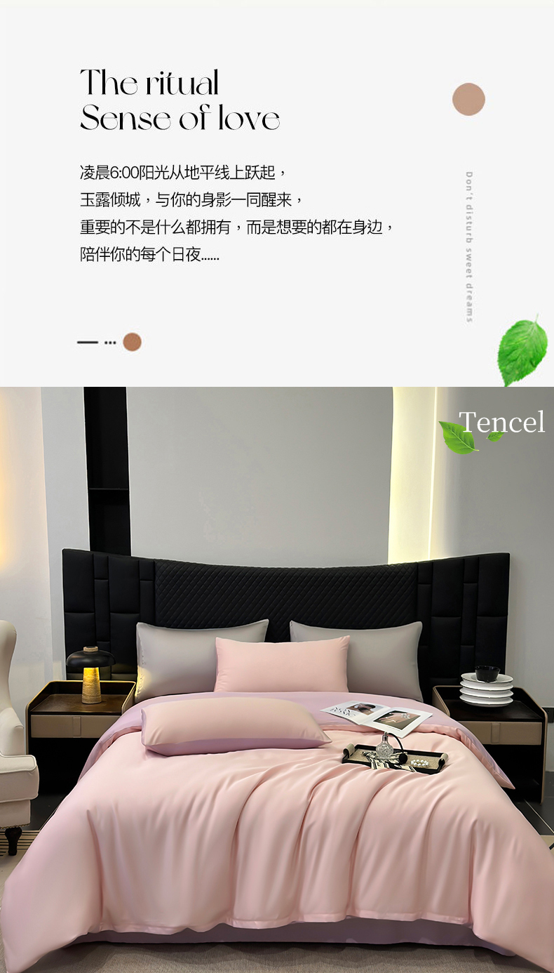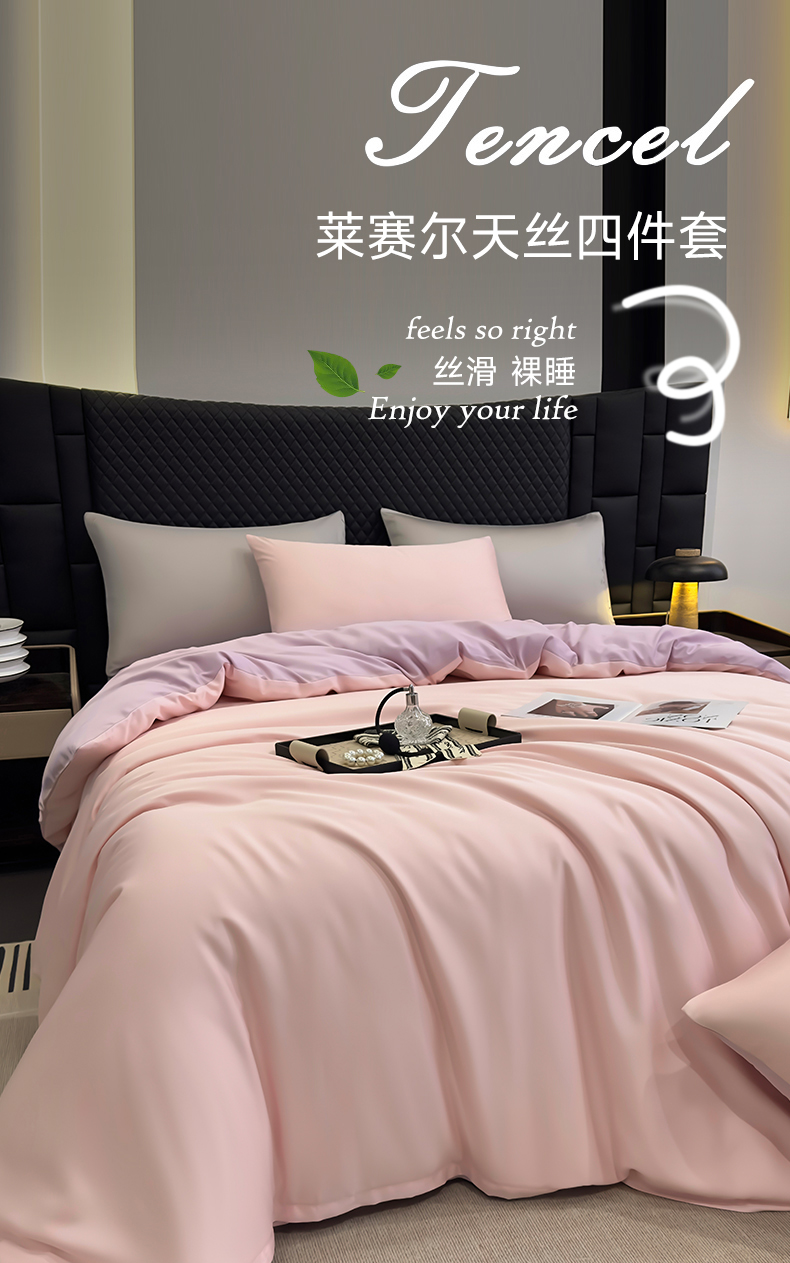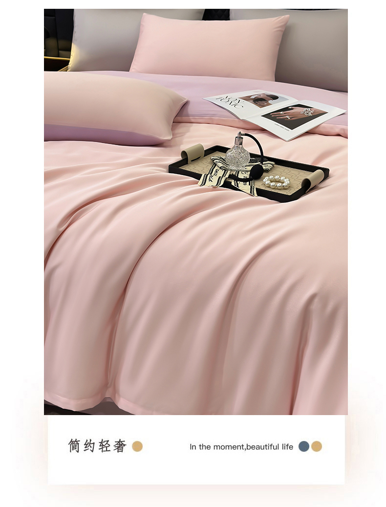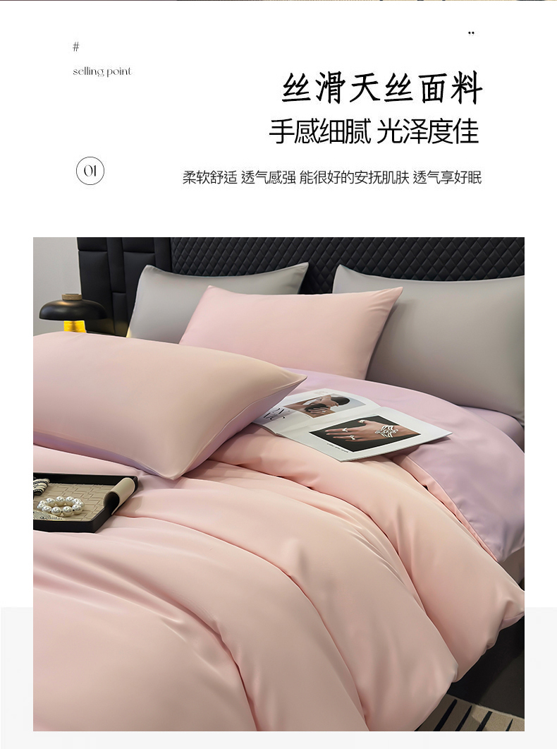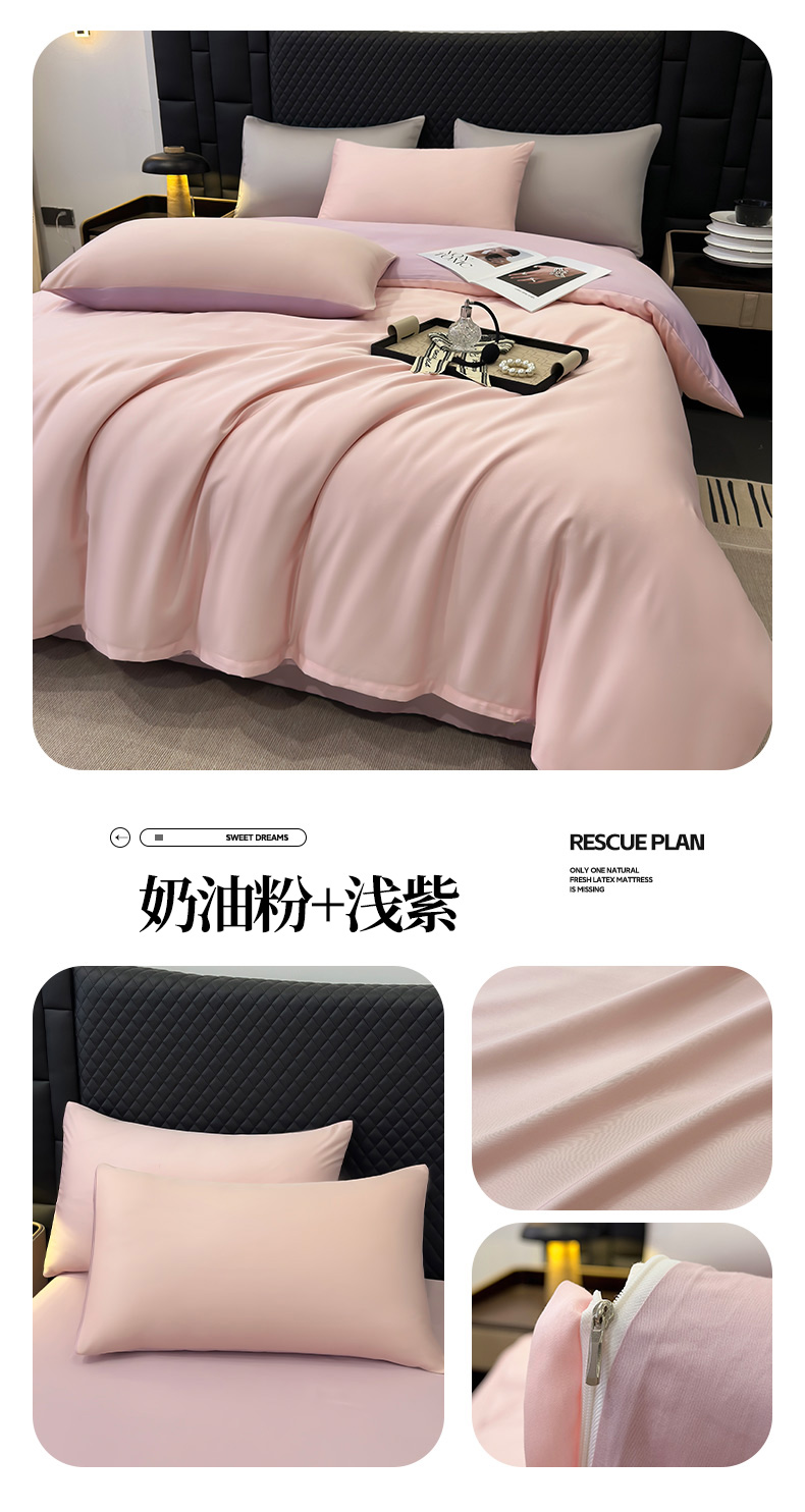 商品名称:直播爆款A类轻奢60S莱赛尔天丝四件套真丝四件套 奶油粉+浅紫