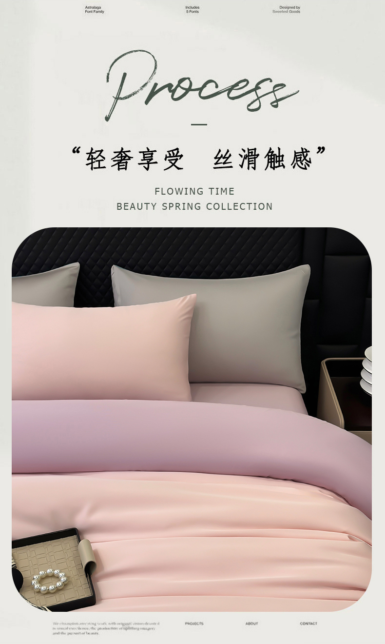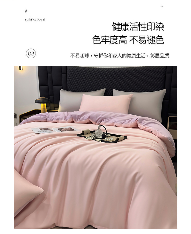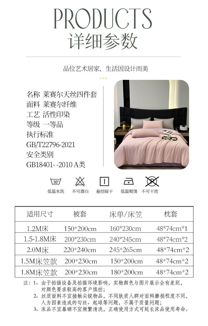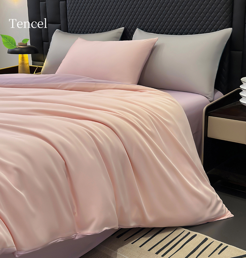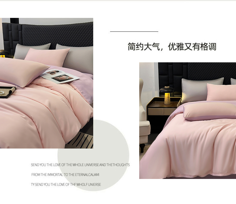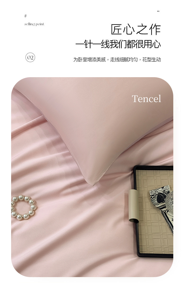 商品名称:直播爆款A类轻奢60S莱赛尔天丝四件套真丝四件套 奶油粉+浅紫