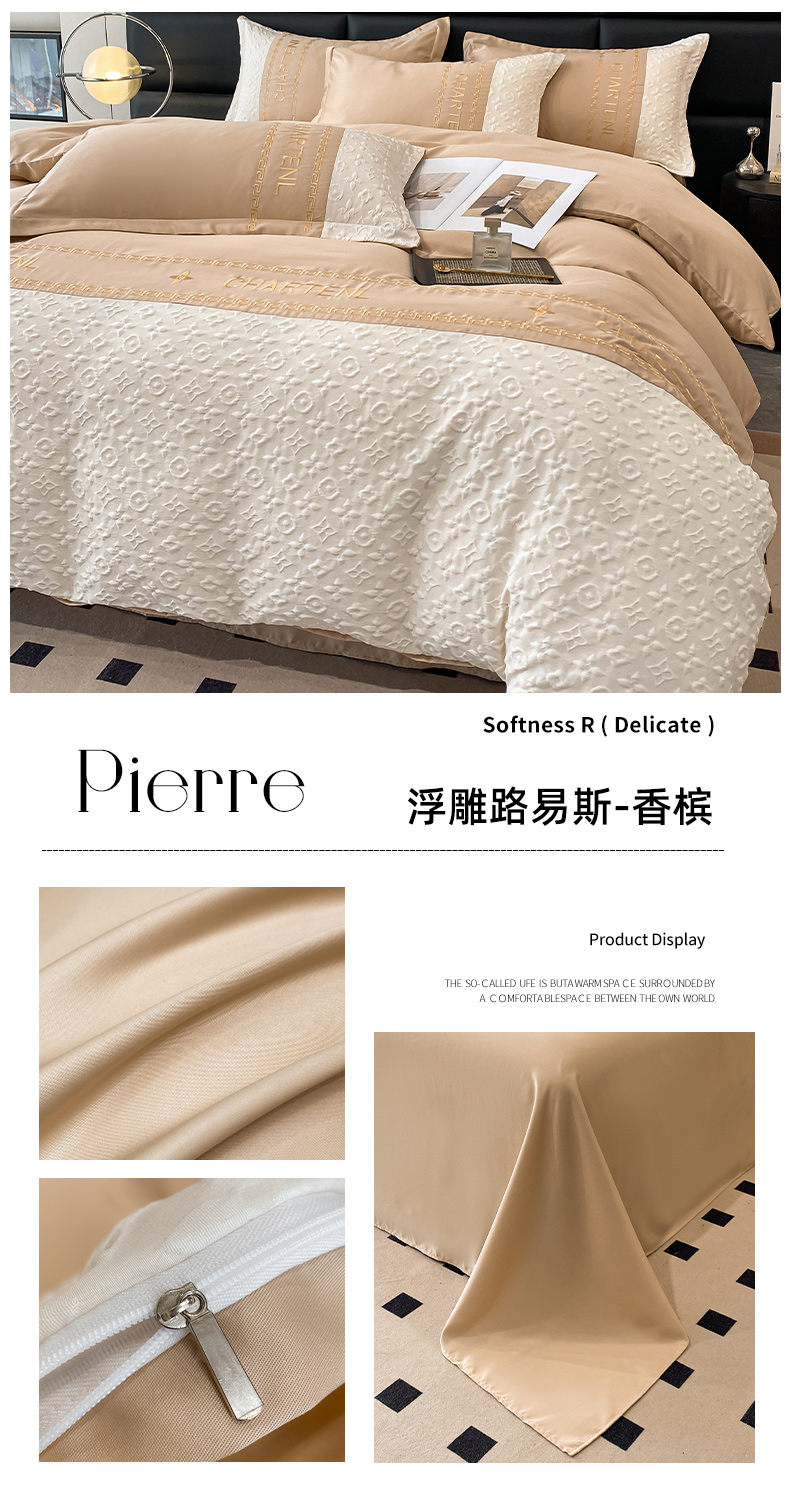 当前位置: 91家纺网 > 商品网购 > 床品套件 > 四件套 > 水洗真丝四件套 > 梦之岛 2024新款A类浮雕立体水洗真丝天丝四件套 浮雕路易斯-香槟