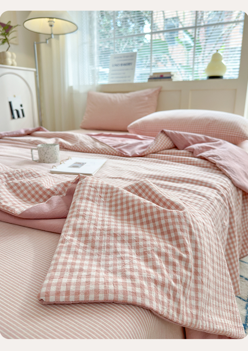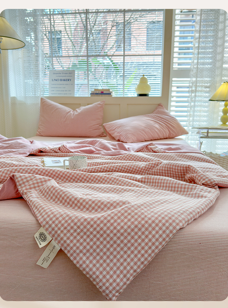 (总)北欧良品2025新款a类全棉色织水洗棉四件套,小小格粉,小小格灰,小小格蓝,小小格绿,小小格米,小小条粉,小小条灰,小小条蓝,小小条绿,小小条米