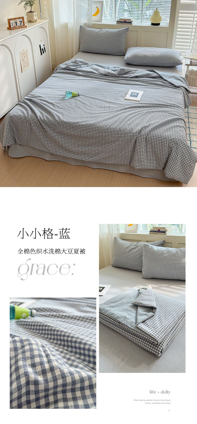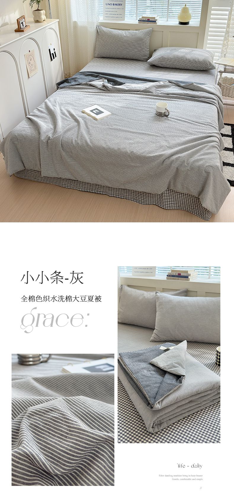 (总)(20%大豆小小格+小小条系列)2024NEW 色织水洗棉夏被四件套空调被子套件