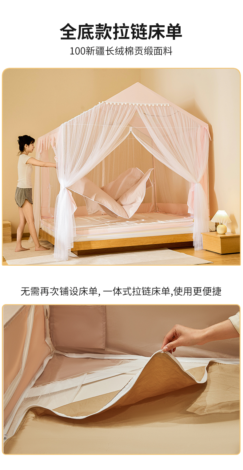 (总)卓尔居 2024新款A类防蚊遮光三开门小房子床帘加密帐纱