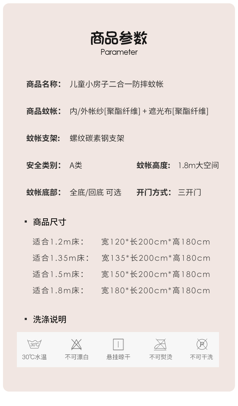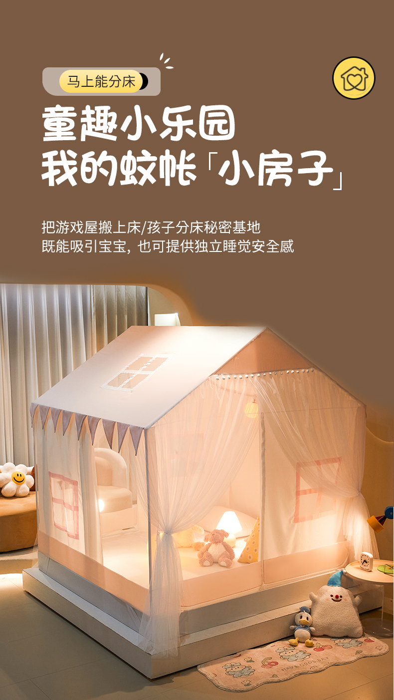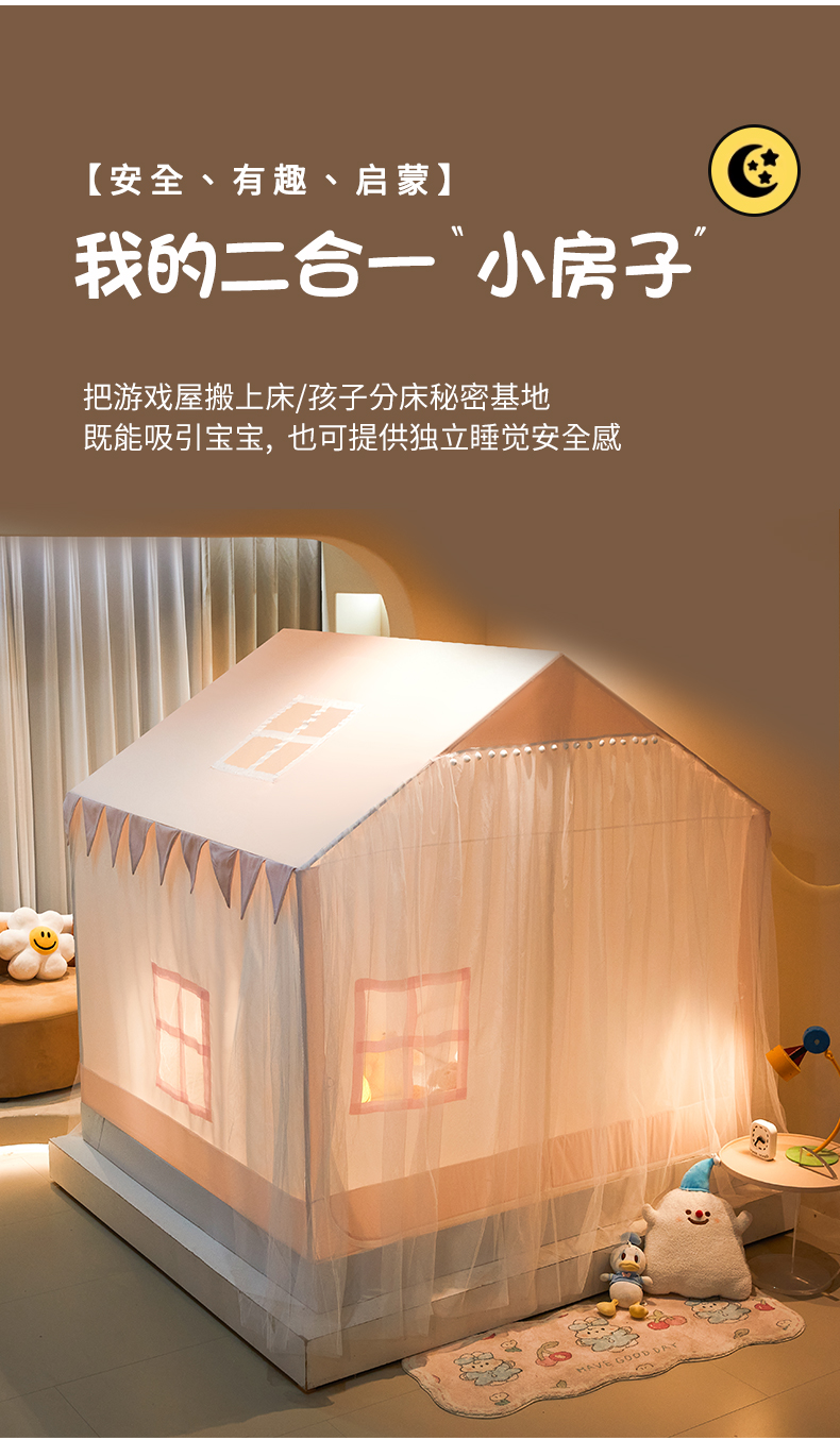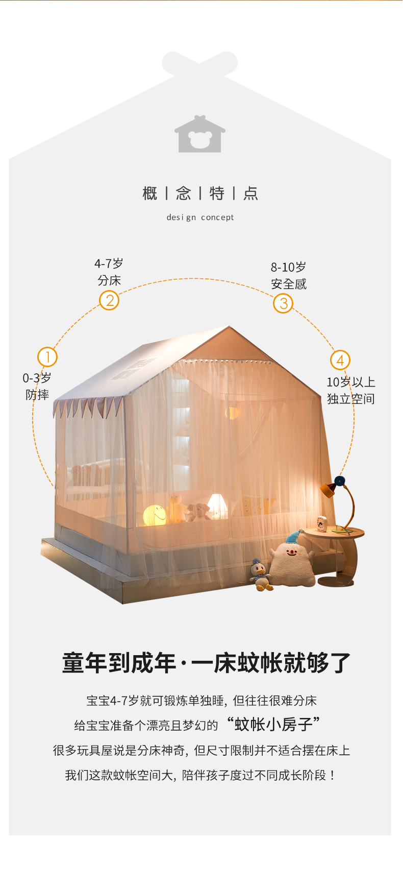 商品名称:(总)卓尔居 2024新款A类防蚊遮光三开门小房子床帘加密帐纱