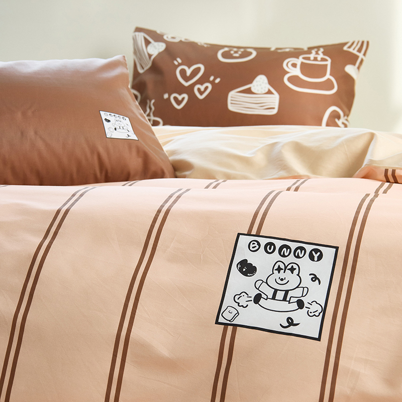 (总)原研家居 2023新款40支全棉13070印花四件套-野兽派系列,樱桃猫,公主猫,波浪猫,黑乖,蓝条狗,小花狗,竹叶熊,水果茶,波点苹果,生椰冰淇凌,青春