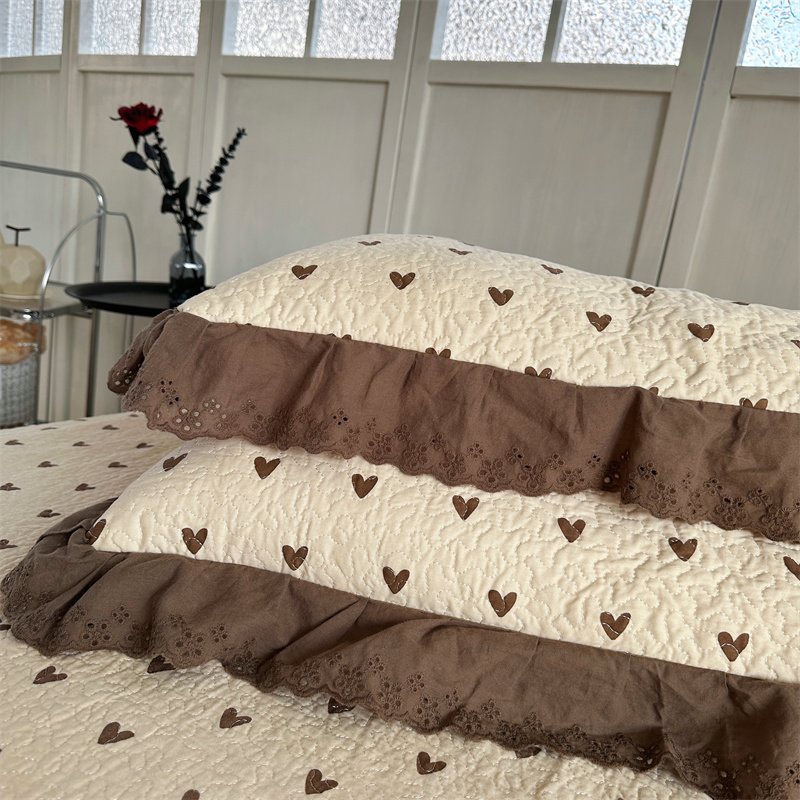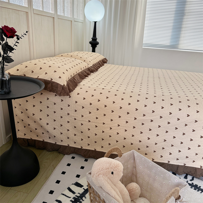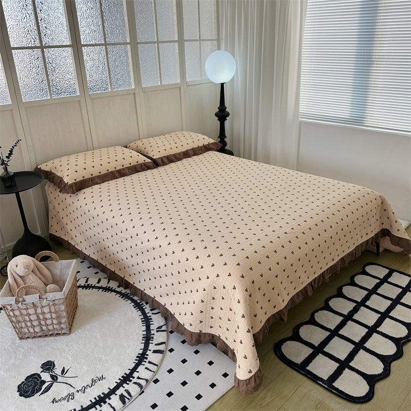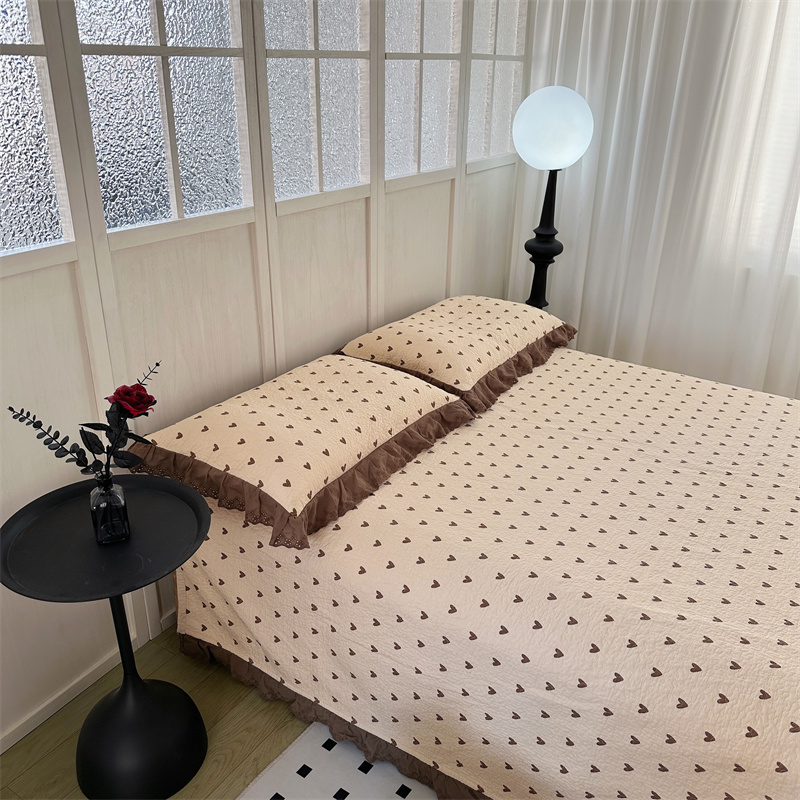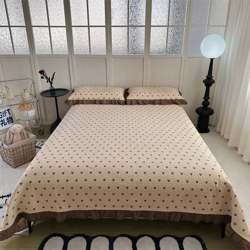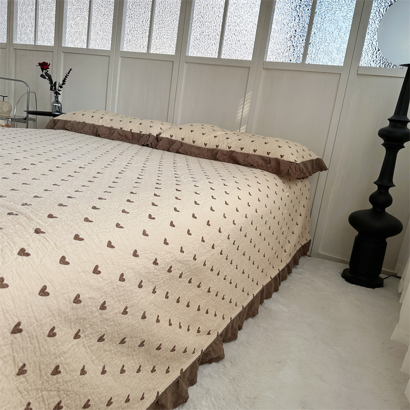 佰织鑫家居(会员-5元) 2024新款全棉法式棉花床盖三件套 爱心咖