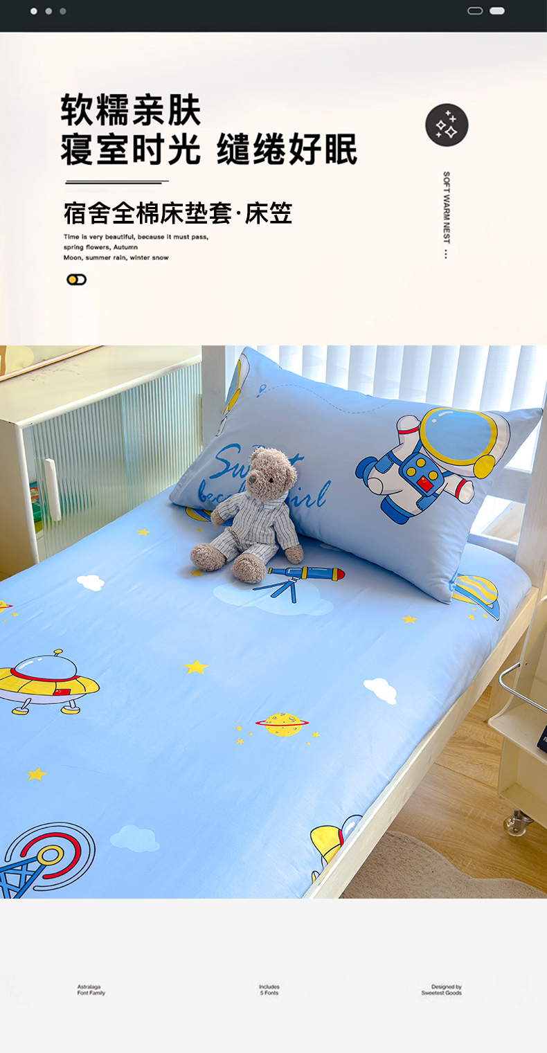 金鑫汇 2024新款全棉卡通印花学生床垫套床笠系列 宇宙奥秘