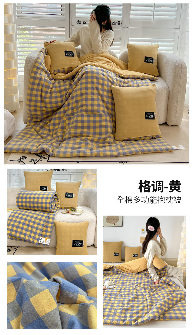 当前位置: 91家纺网 > 商品网购 > 居家日用 > 靠垫/抱枕 > 翰轩家居 2024新款全棉色织水洗棉抱枕被 格调-黄