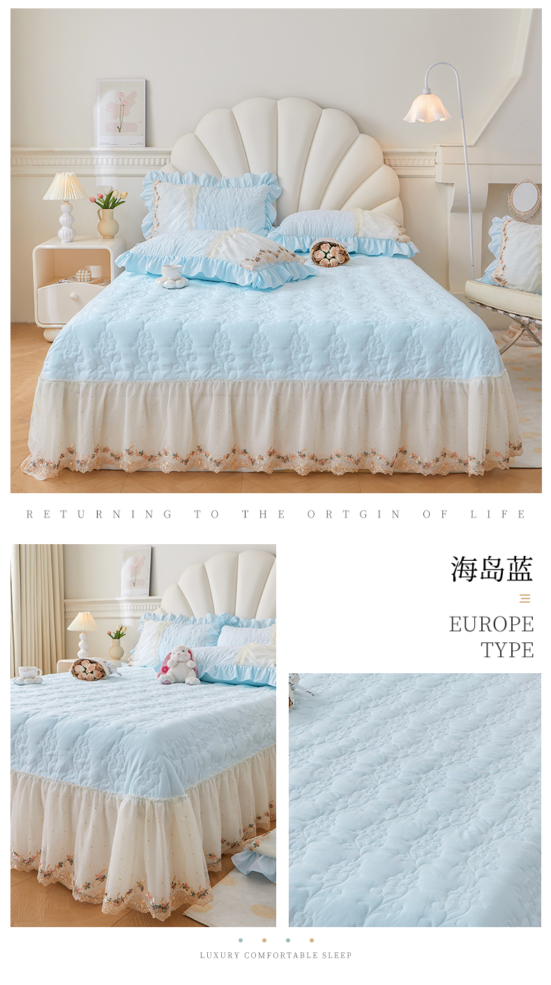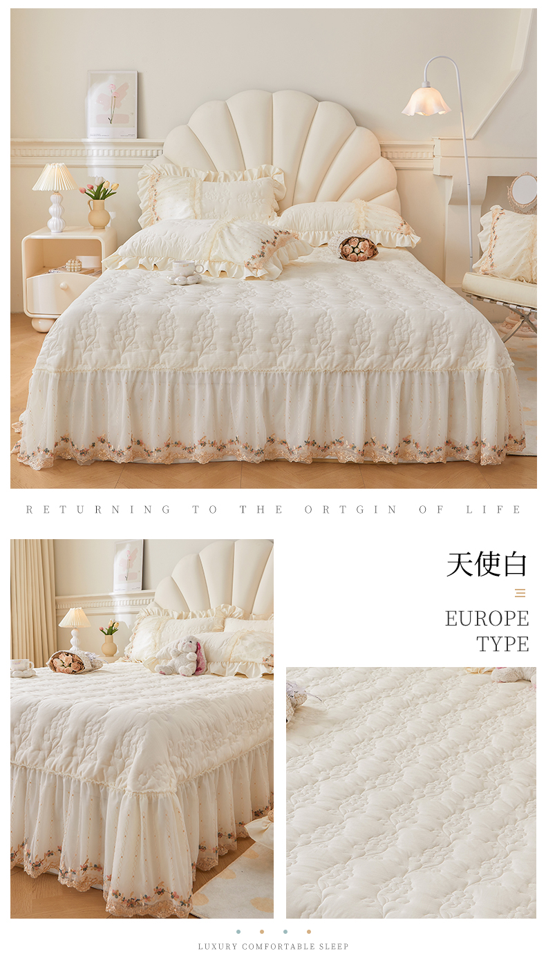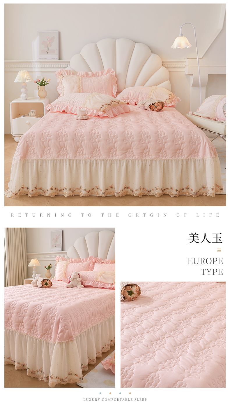 (总)恒爱家纺 2025新款牛奶绒贴布绣夹棉床裙四件套,豆沙红,浪漫紫,天空蓝,温馨粉,象牙白