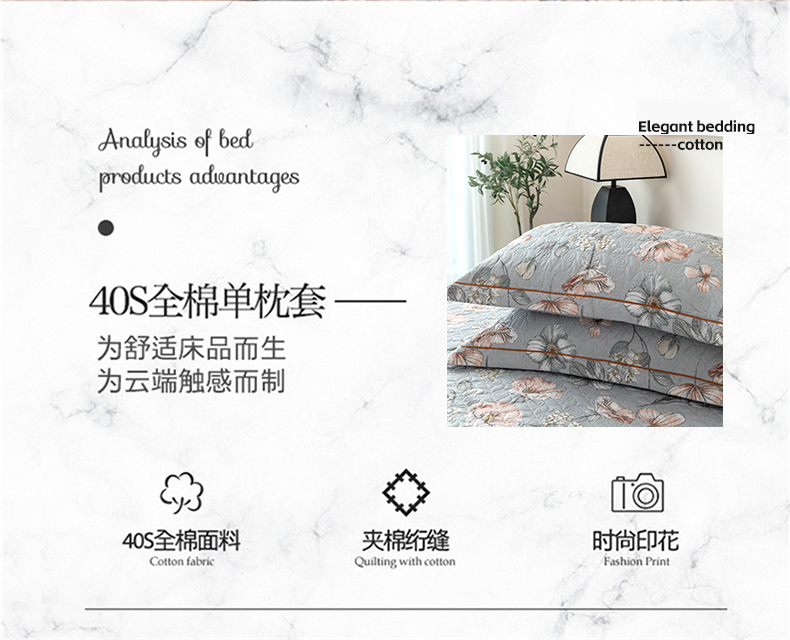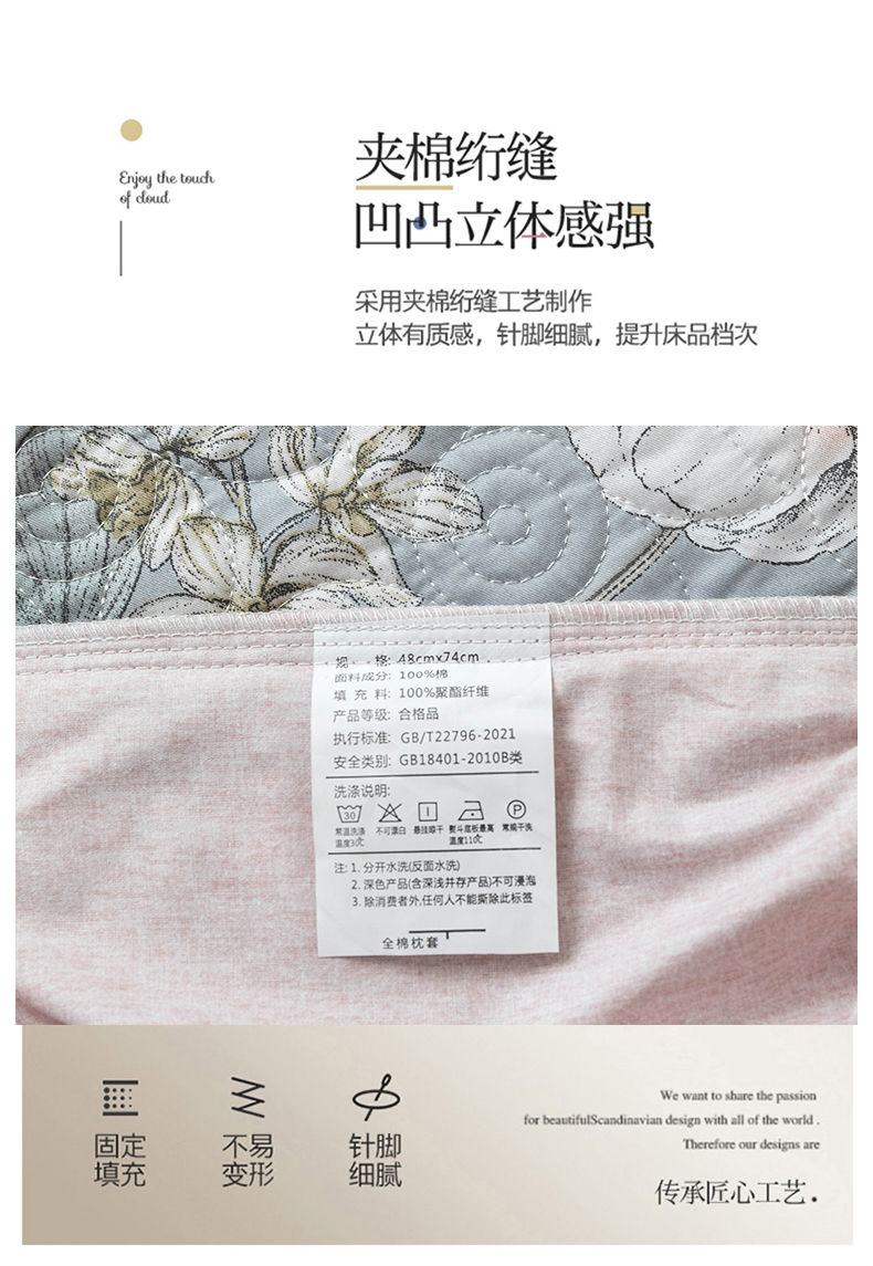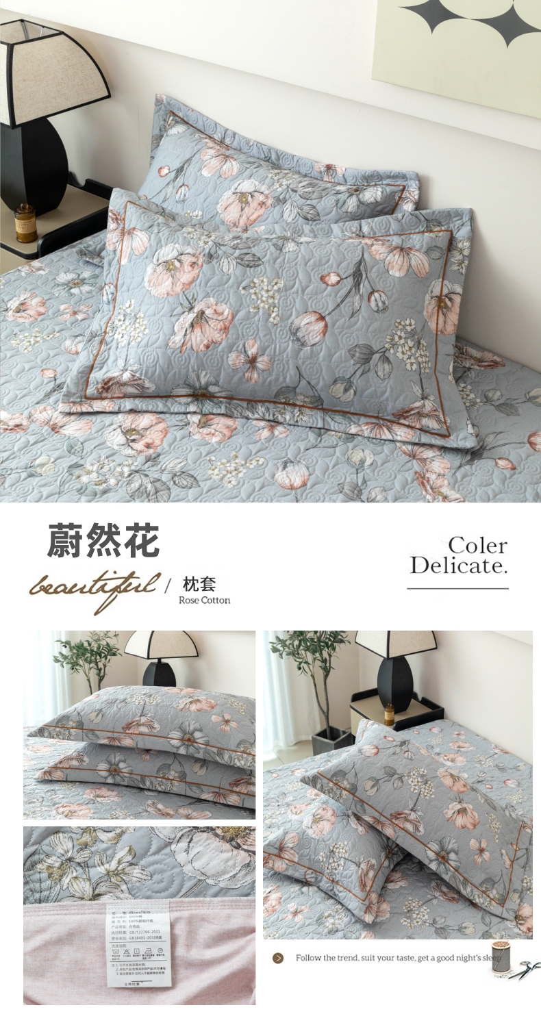 商品名称:优乐家纺 2025新款全棉斜纹13376宽边枕头套 蔚然花