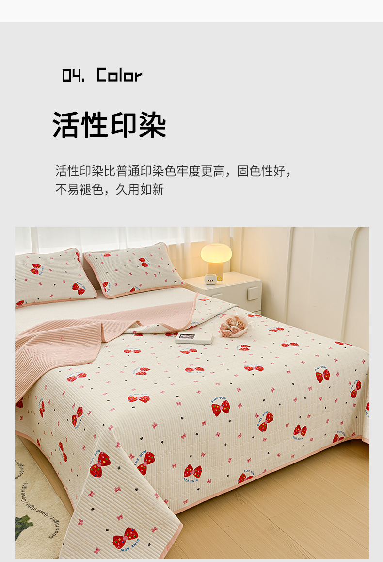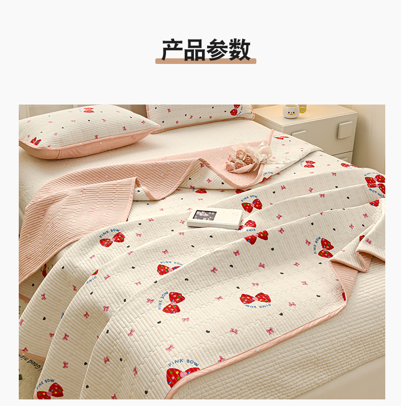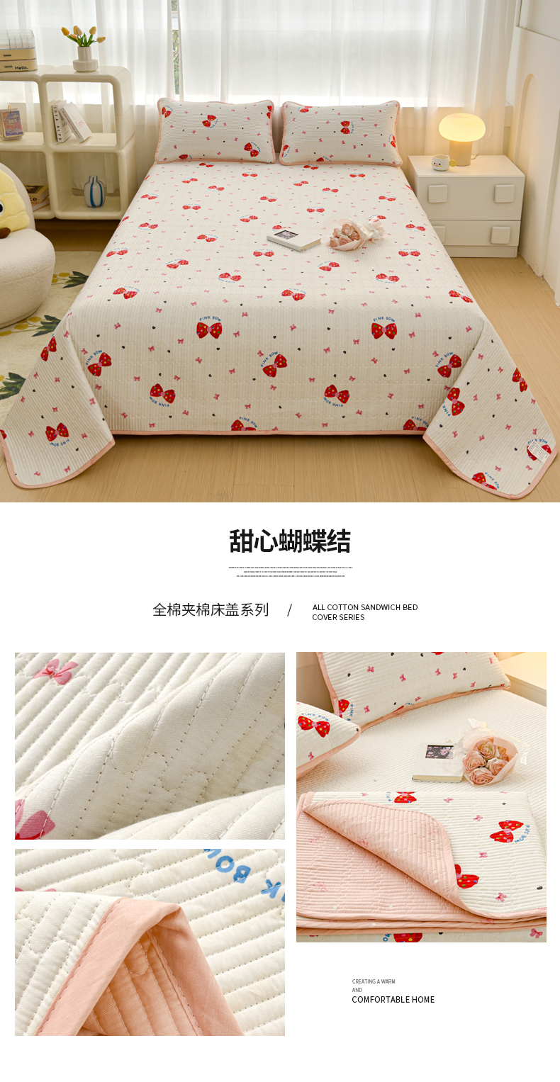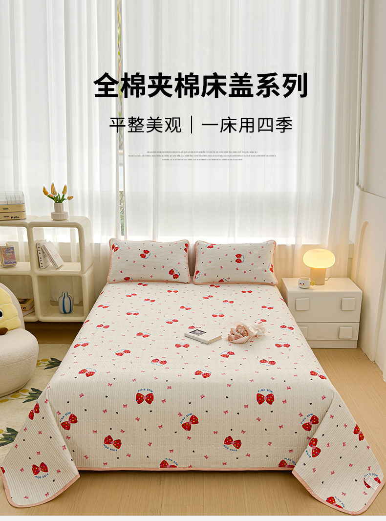 商品名称:金丝鸟家纺 2024新款双面全棉夹棉床盖 甜心蝴蝶结