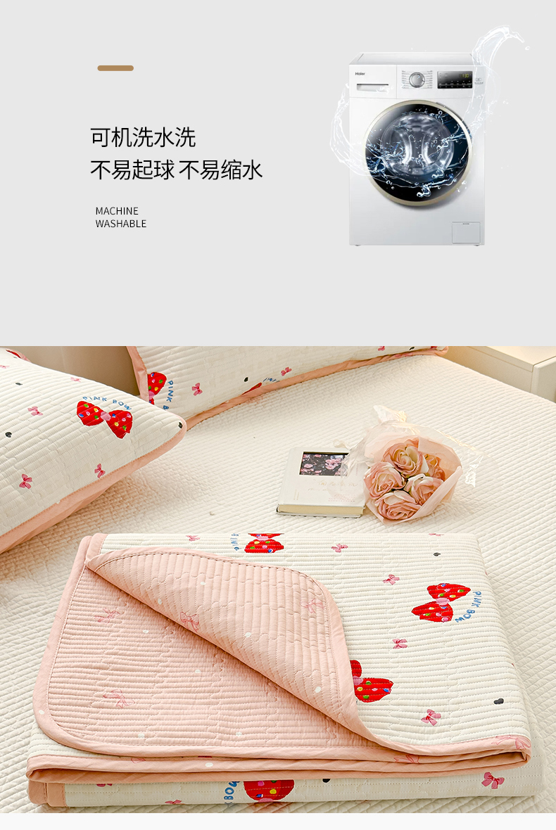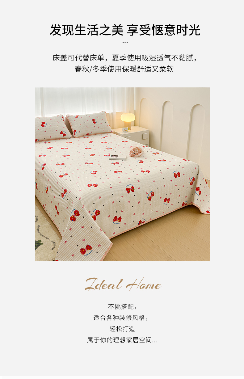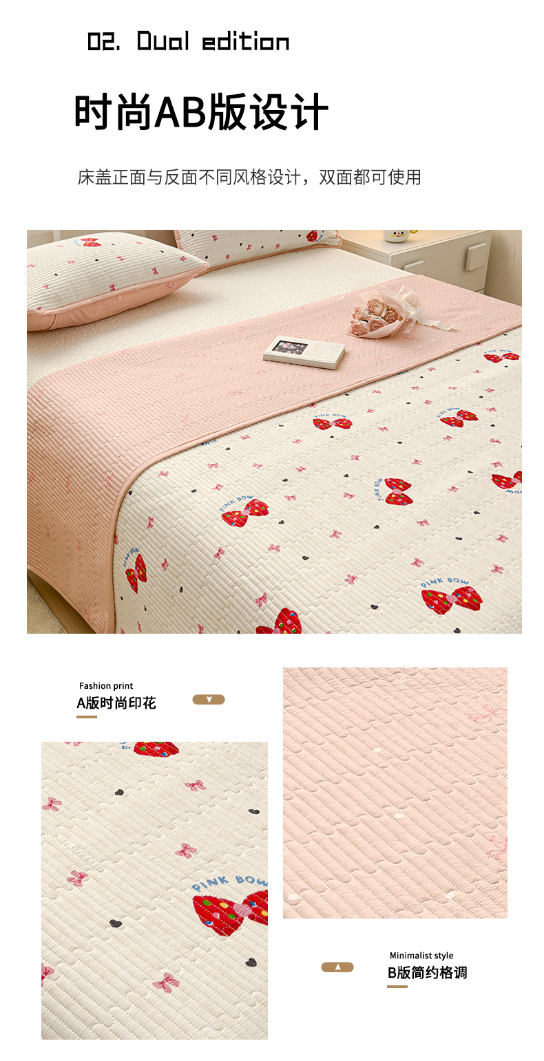 商品名称:金丝鸟家纺 2024新款双面全棉夹棉床盖 甜心蝴蝶结