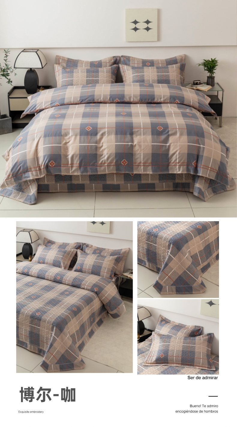 当前位置: 91家纺网 > 商品网购 > 床品套件 > 四件套 > 其它四件套 > 优乐家纺 2025新款全棉斜纹13376单层被套夹棉床盖款四件套 博尔-咖