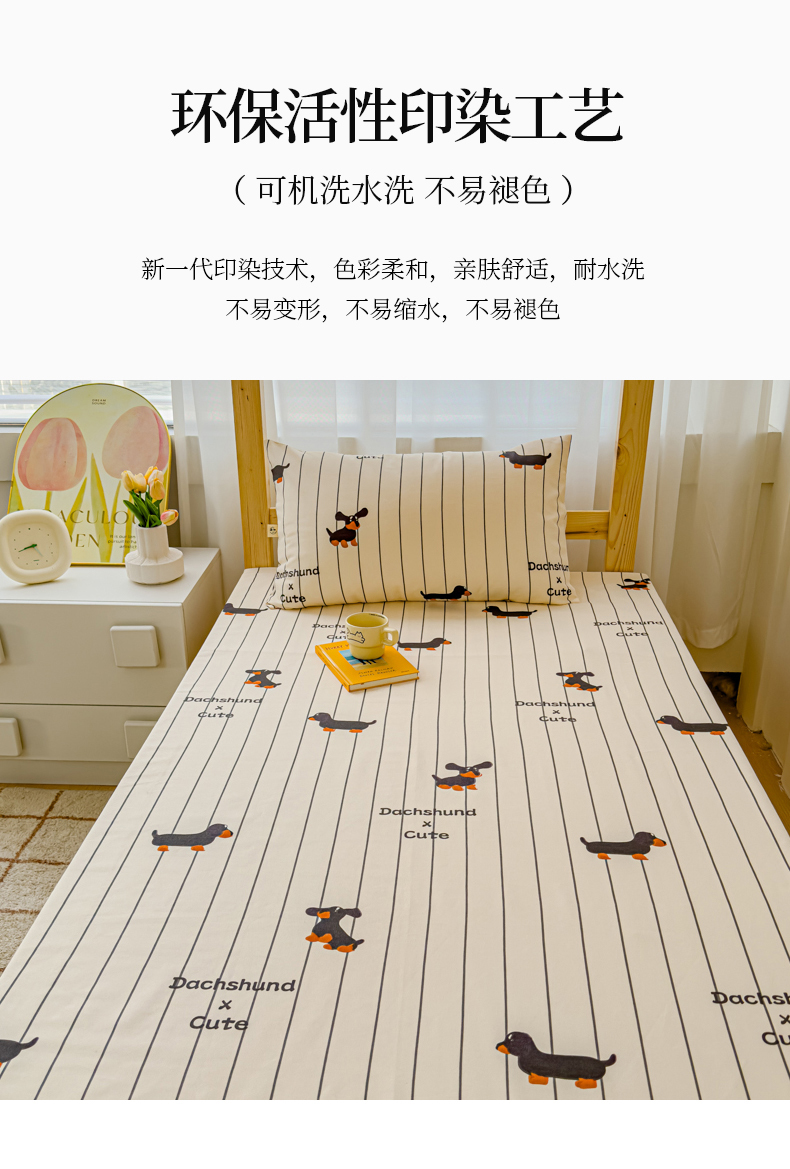 金丝鸟家纺 2024新款学生款A类老粗布床笠 条纹狗