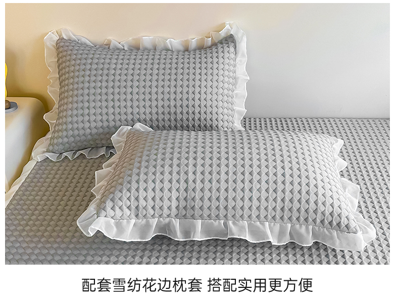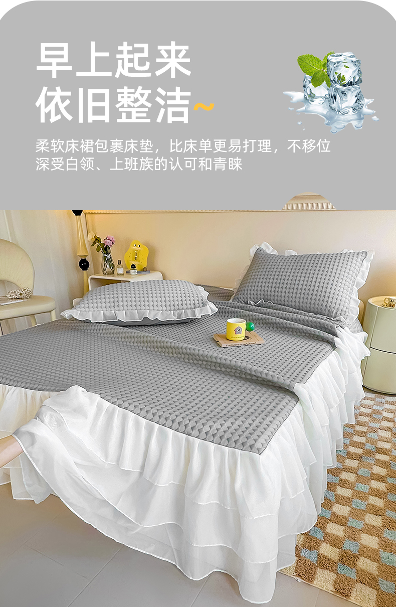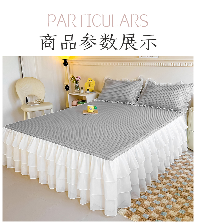 商品名称:屹成家纺 2024新款PE高分子冰丝凉席床裙款 菱形格-灰