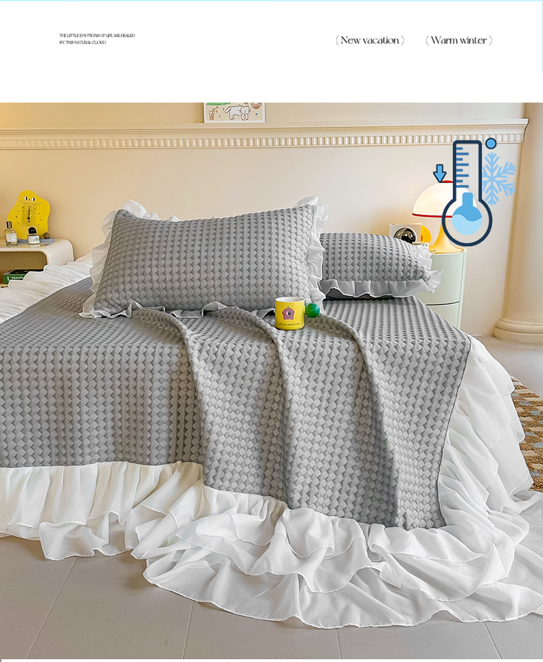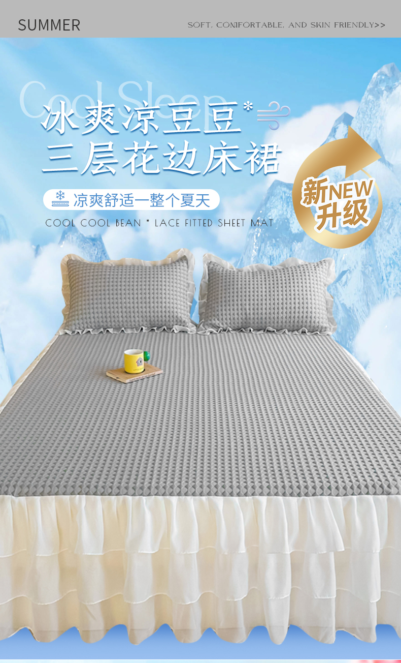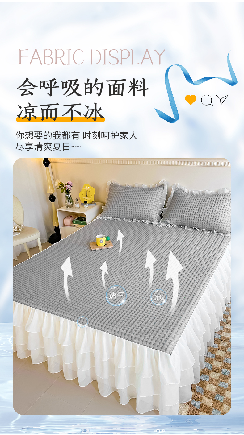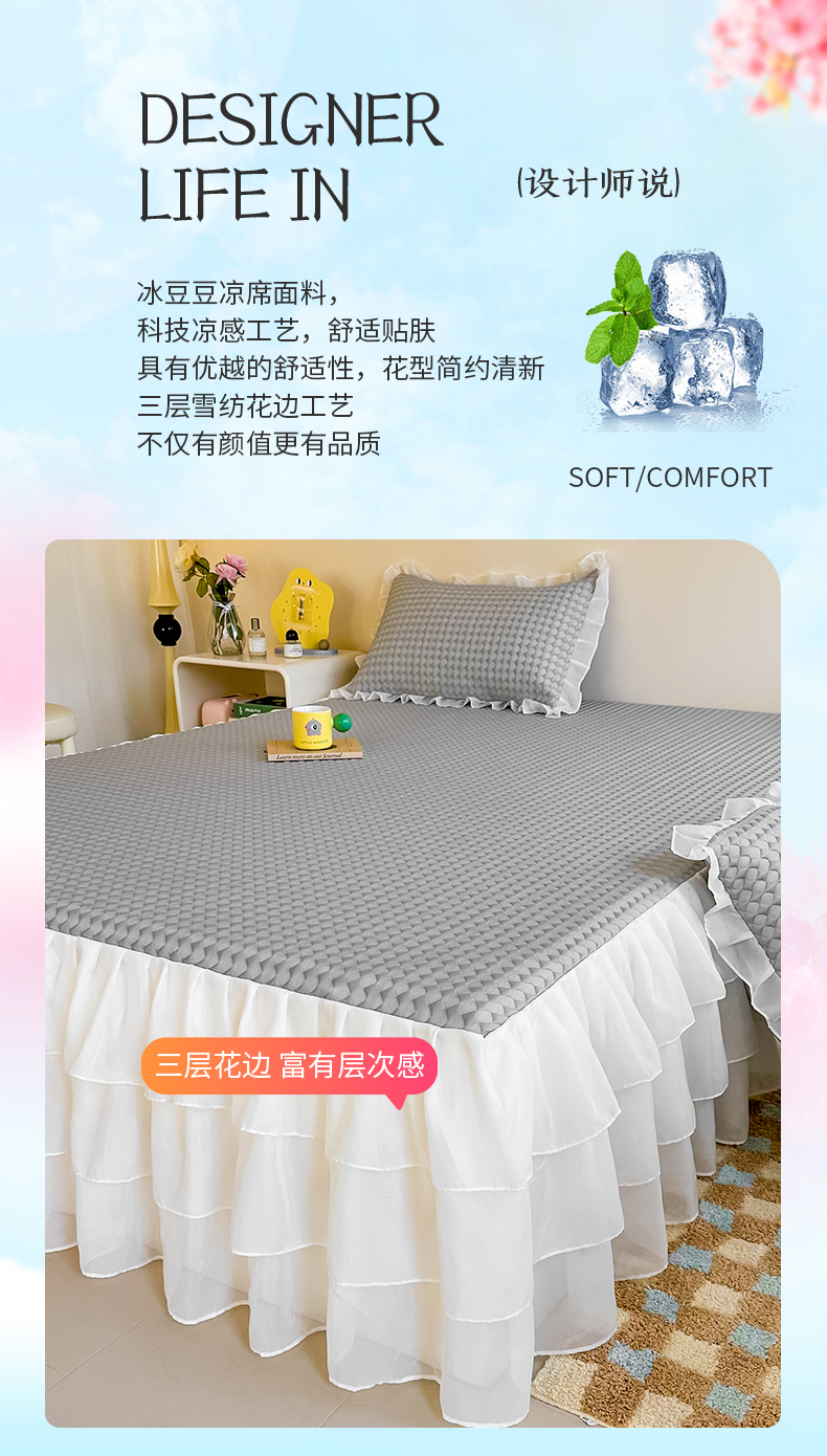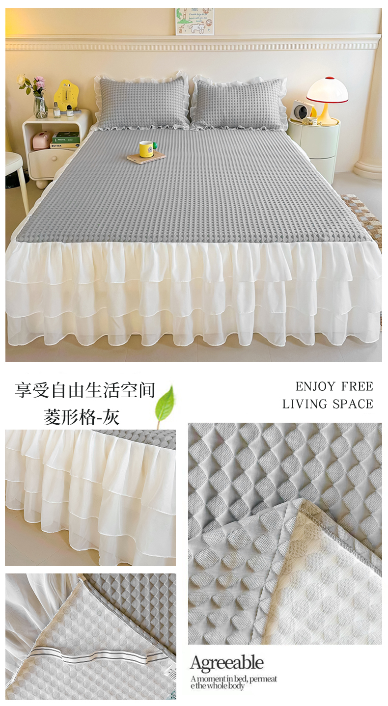 屹成家纺 2024新款PE高分子冰丝凉席床裙款 菱形格-灰