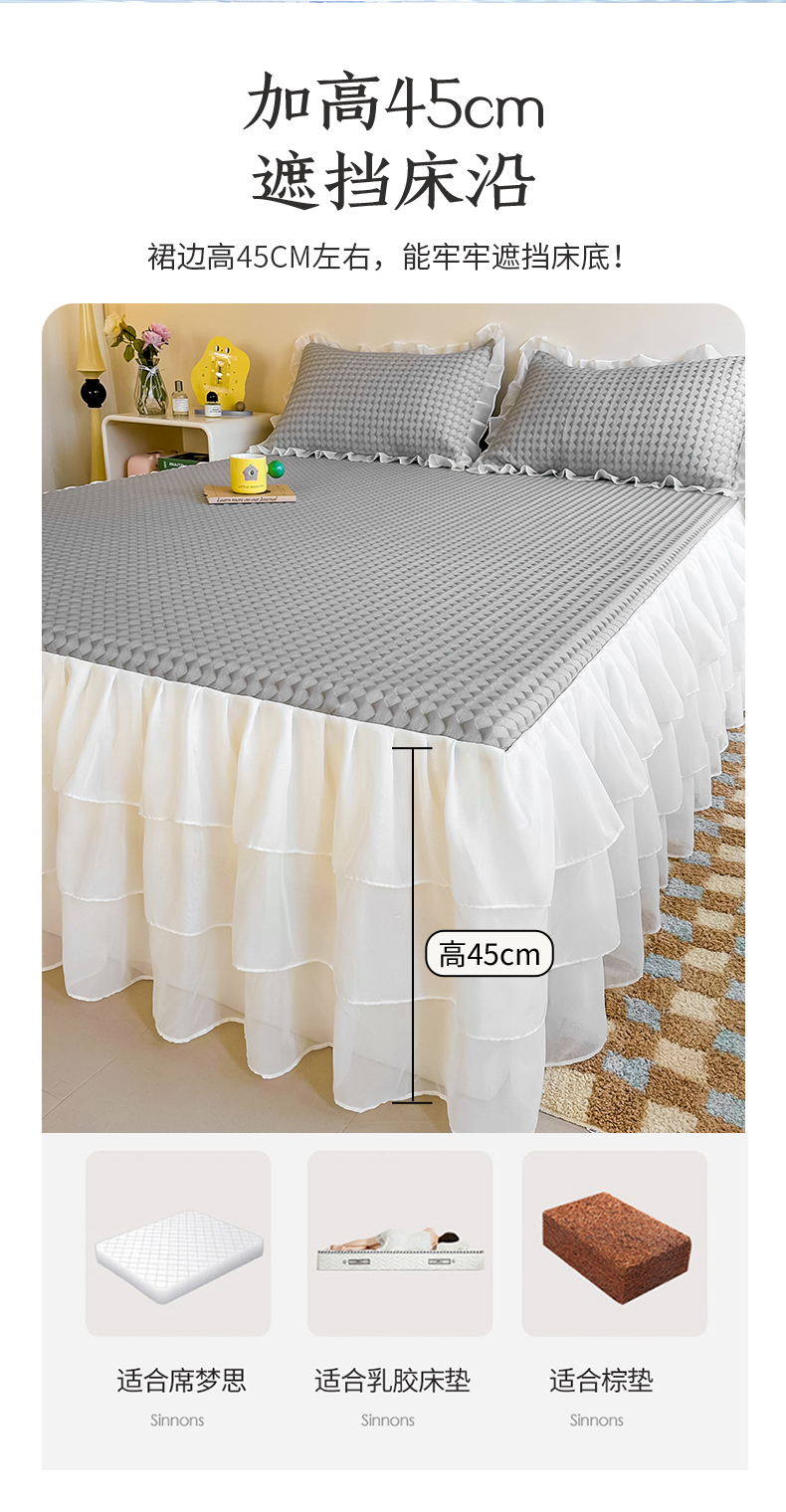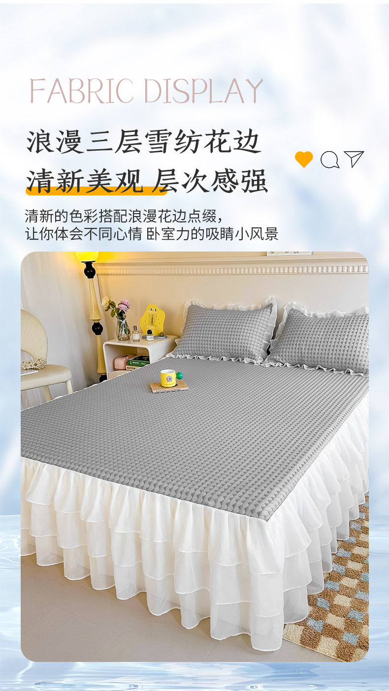 (总)屹成家纺2025新款水晶绒夹棉绗缝蕾丝床裙三件套(塞纳河畔)床裙单件起售价不低于105元,大红,豆沙,翡翠绿,粉玉,橄榄绿,蔚蓝,银灰