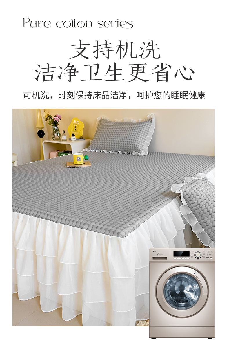 (总)屹成 2024新款水洗棉蕾丝四季款床笠床裙单品套件-床裙三件套,粉玉,豆沙,粉红,大红,橄榄绿,卡其,玫红,浅紫,水绿,天蓝,银灰