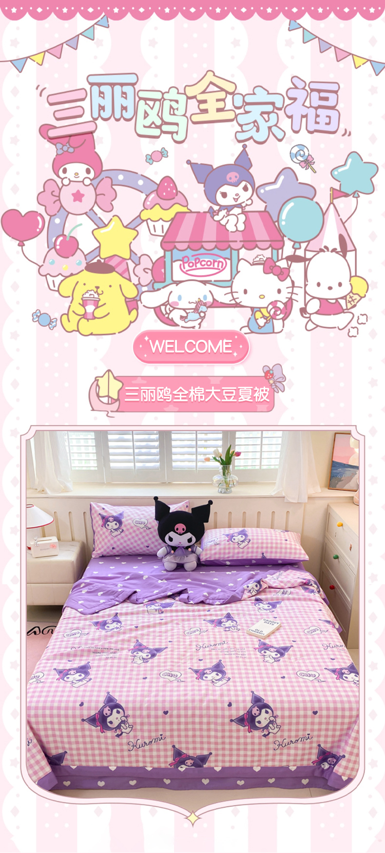 博雅 2024新款全棉三丽鸥夏被(要买家秀联系客服) 紫格库洛米