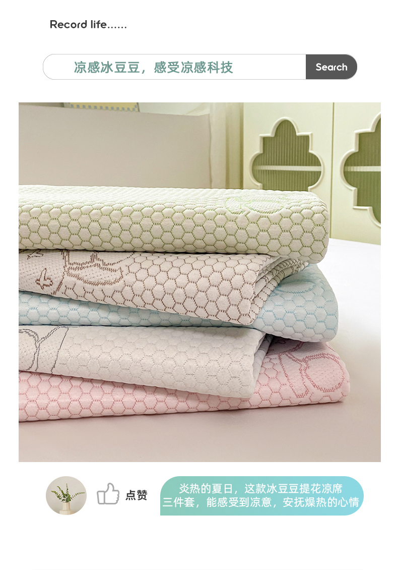 商品名称:(总)蝶帕 2025新款冰豆豆提花凉席三件套